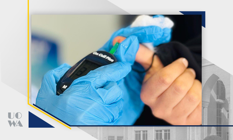 نظّمت كلية التمريض في جامعة وارث الأنبياء (ع) حملة صحية داخل أروقة الجامعة، للتحري عن مرض السكري من خلال إجراء فحوصات مجانية لعدد من الأساتذة والطلبة، وذلك ضمن جهودها لتعزيز الصحة العامة ودعم أهداف التنمية المستدامة.