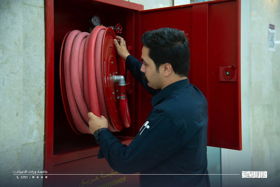 شعبة الدفاع المدني تواصل جهودها اليومية لضمان بيئة جامعية آمنة في جامعة وارث الأنبياء (ع)