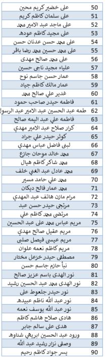 اسماء الطلبة المقبولين في كلية الهندسة قسم هندسة طب الحياتي