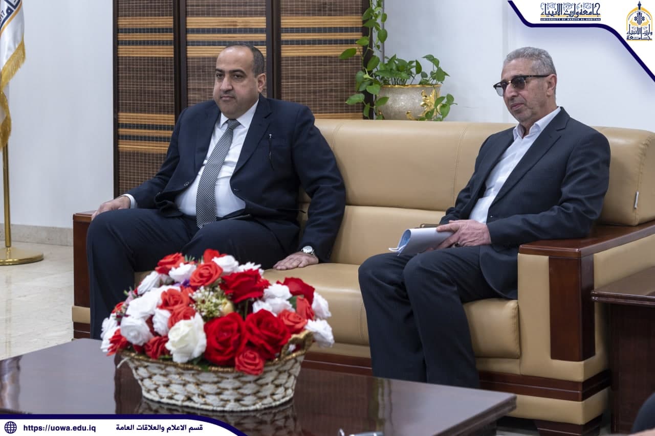 وكان باستقباله السيد رئيس هيئة التعليم الجامعي الاستاذ الدكتور حيدر التميمي والسيد رئيس الجامعة الاستاذ الدكتور ابراهيم الحياوي، والسادة مساعدي رئيس الجامعة وعمداء الكليات ورؤساء الاقسام واعضاء هيئة التدريس.