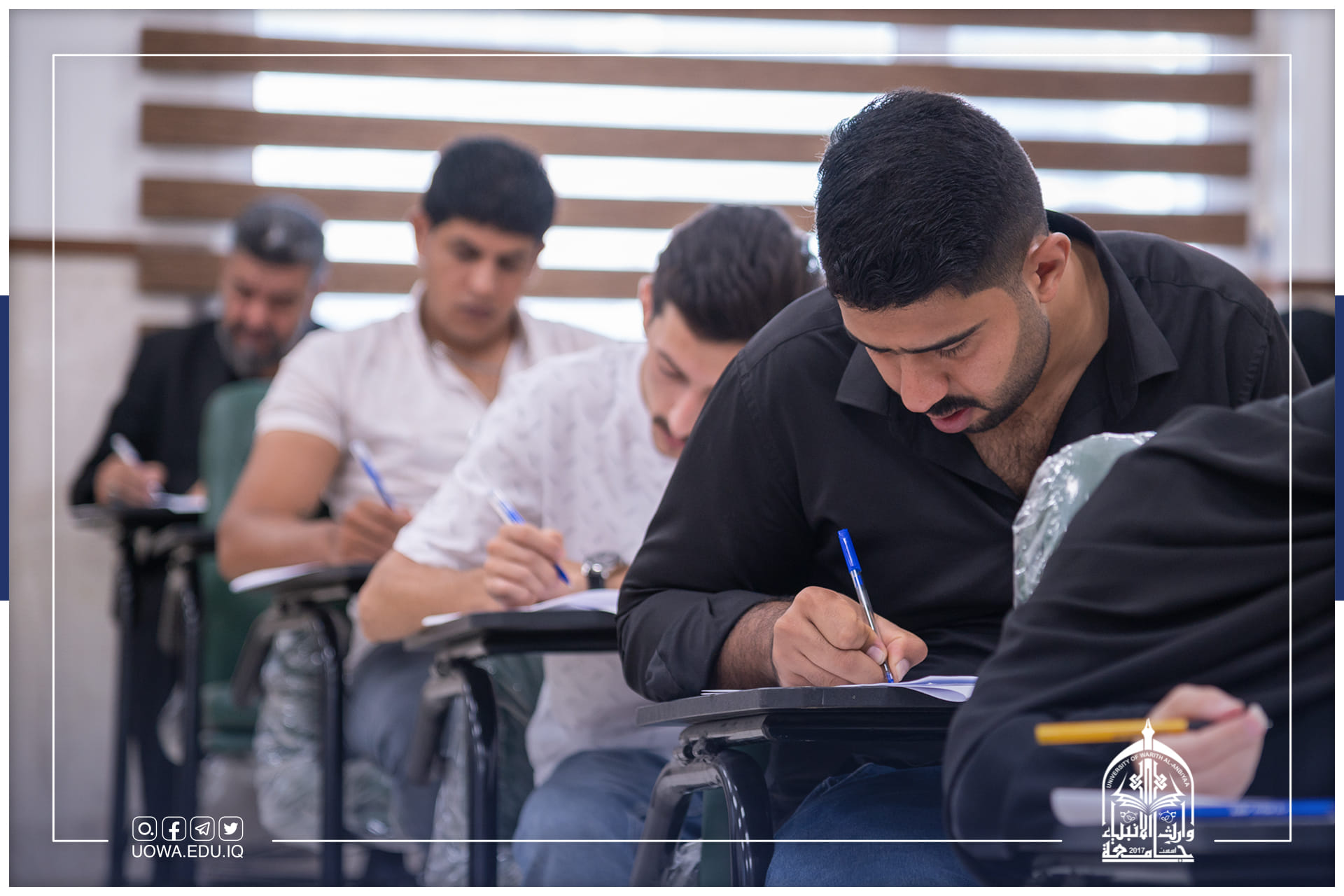 بالصور.. طلبة جامعة وارث الانبياء(عليه السلام) يؤدون الامتحانات النهائية النظرية (الدور الثاني)، وبتوجية من رئاسة الجامعة تم تهيئة كافة المستلزمات الضرورية للحفاظ على انسيابية الامتحانات.