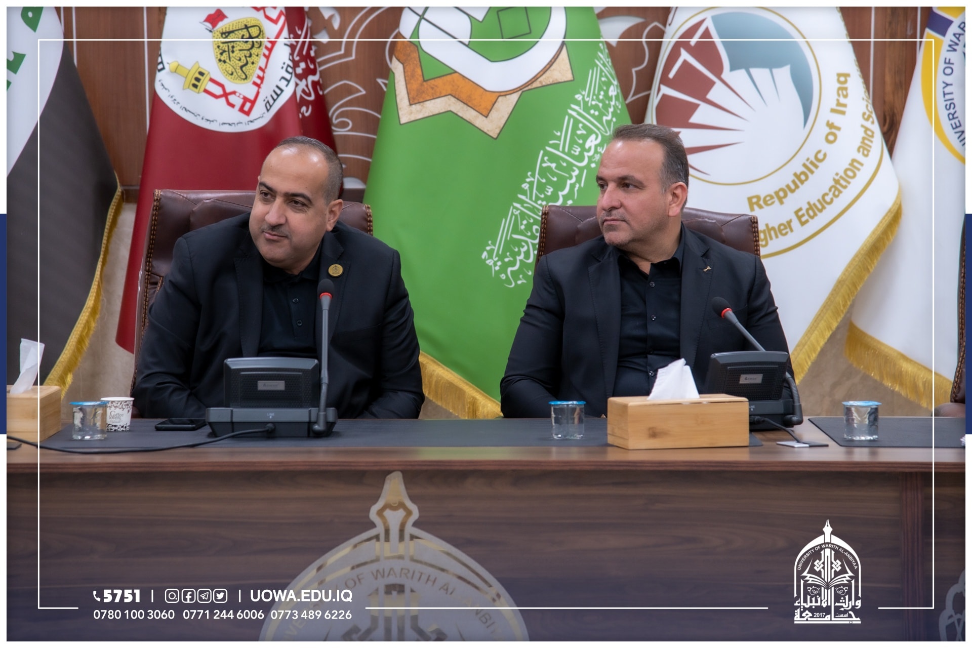 تفعيلاً لبنود الاتفاقية العلمية الموقعة بين جامعتي وارث الانبياء(عليه السلام) ومشهد للعلوم الطبية، استقبلت رئاسة هيئة التعليم الجامعي متمثلة بالاستاذ الدكتور حيدر التميمي ورئاسة الجامعة متمثلة بالاستاذ الدكتور ابراهيم الحياوي والمساعد العلمي الاستاذ الدكتور عباس الدعمي، وفد جامعة مشهد للعلوم الطبية لتنفيذ الاتفاقيات المبرمة بين الجانبين حول تدريبِ الطلبةِ وتنميةِ مهاراتِهِم العلميةِ والعملية في كلية التمريض وكذلك التعاون في مجالات تدريب الطلبة وتبادل الأساتذة المتخصصين فضلاً عن اقامة البحوث المشتركة بين الجانبين".