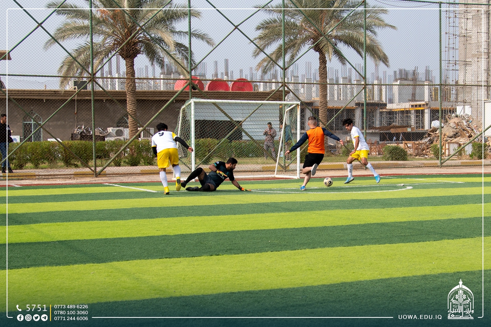 بالصور .... استمرار منافسات بطولة وارث الانبياء لخماسي الكرة بين فرق كليات واقسام الجامعة،التي يقيمها قسم النشاطات الطلابية بالتعاون مع مركز رعاية الشباب بالعتبة الحسينية المقدسة.