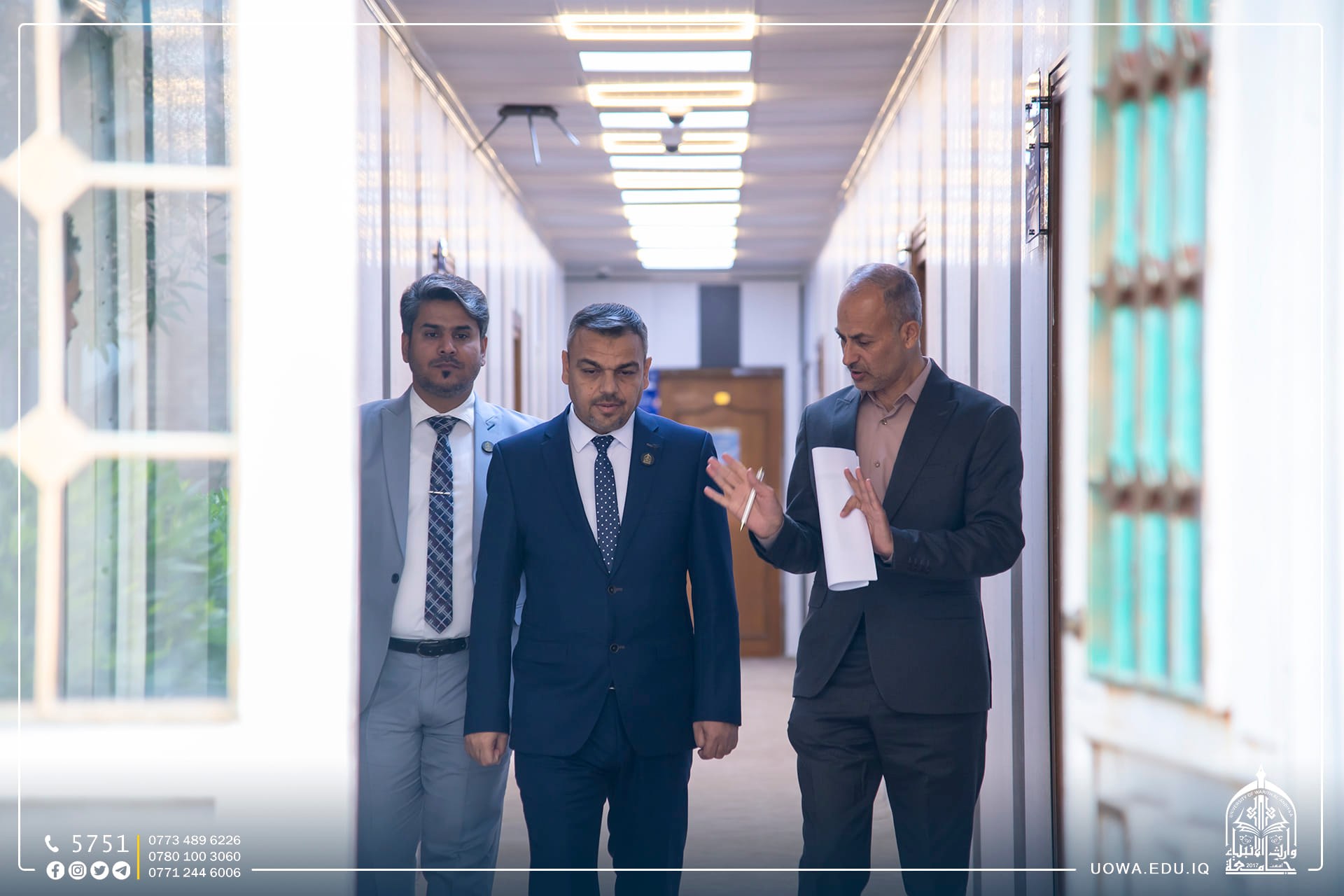 بالصور.. جولة تفقدية للسيد المساعد العلمي الاستاذ الدكتور واقد الموسوي يرافقه السيد رئيس قسم البعثات والعلاقات الثقافية المدرس الدكتور مهدي محمد مهدي داخل اروقة الجامعة،  ولقاء عدد من السادة عمداء الكليات، ورؤساء الاقسام لمتابعة الأعمال المنجزة ،والخطط المرسومة وآليات العمل وتطويرها بما يتلائم وتطلعات رئاسة الجامعة.