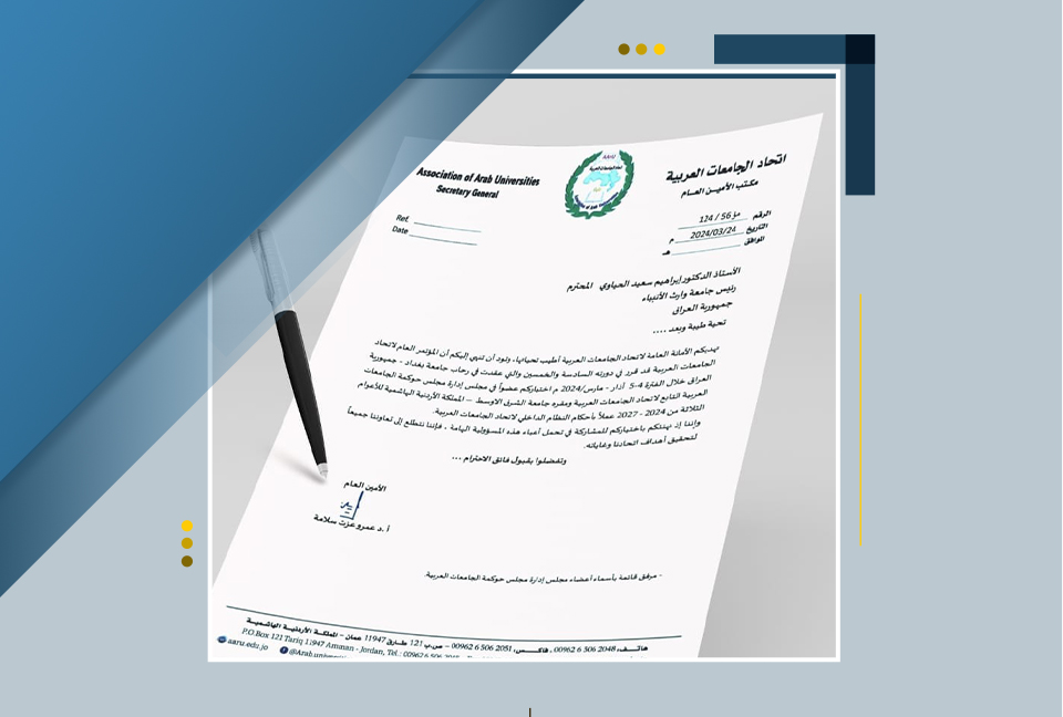 تم هذا الاختيار استنادًا إلى الكفاءة العلمية والأكاديمية الرفيعة التي يتمتع بها الدكتور الحياوي، بالإضافة إلى سمعة جامعة وارث الأنبياء (عليه السلام). وبهذه المناسبة، قدم اتحاد الجامعات العربية التهنئة لجامعة وارث الأنبياء على هذا التكريم والاختيار.