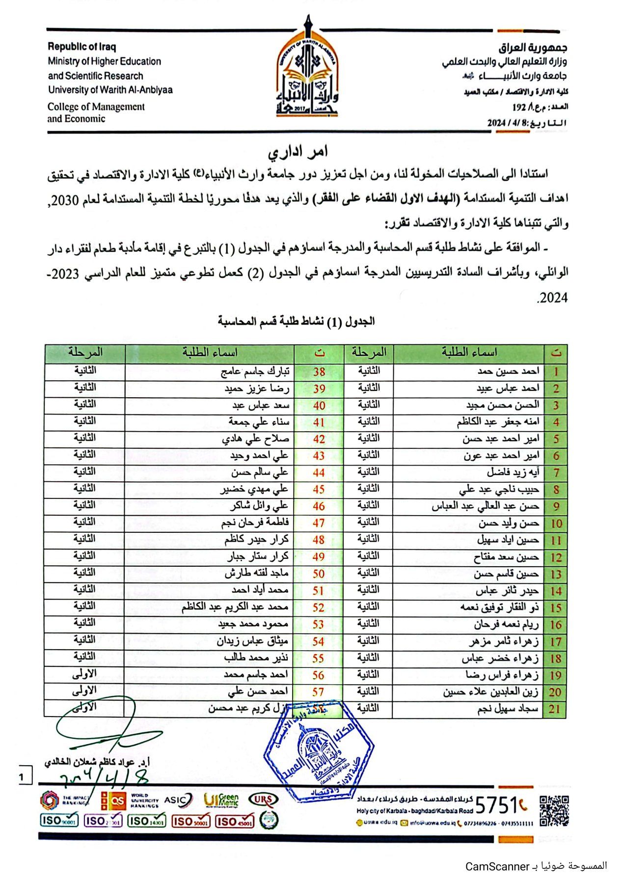 أقامت كلية الإدارة والاقتصاد، بمشاركة طلبتها، مأدبة طعام لفقراء دار الوائلي، ضمن إطار العمل التطوعي والجهود الإنسانية التي تهدف إلى دعم المجتمع.