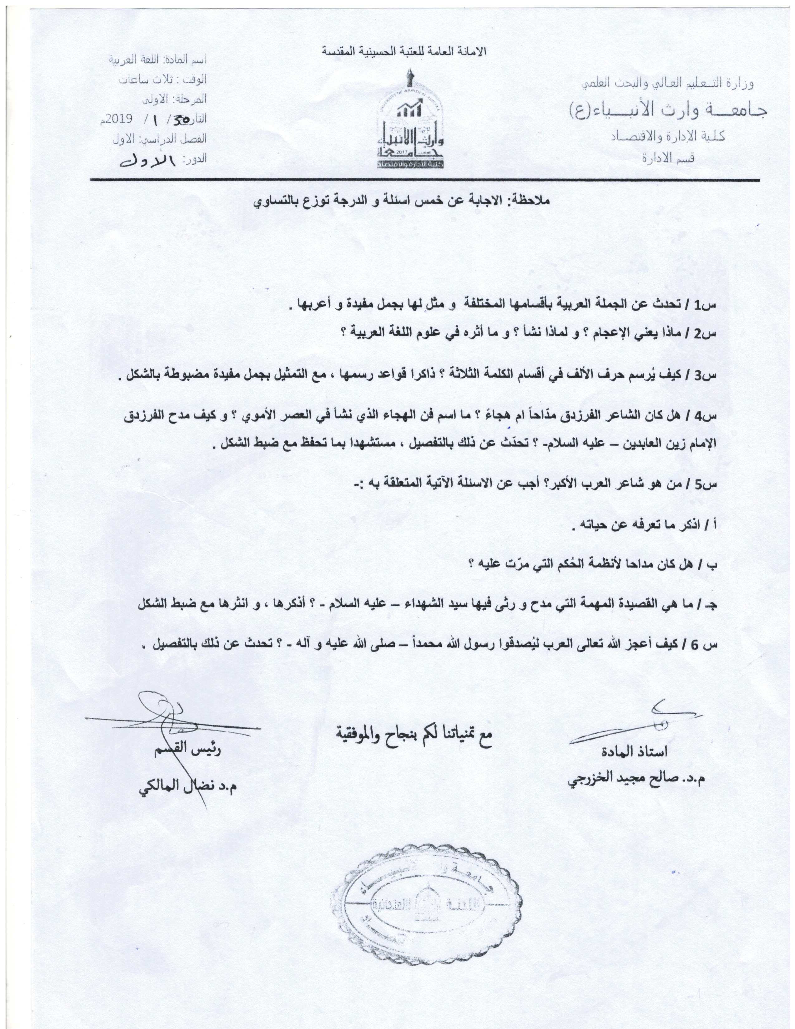 إجراء الامتحان المشترك لتعزيز الرصانة العلمية في قسم العلوم المالية والمصرفية الاسلامي كلية العلوم الاسلامية