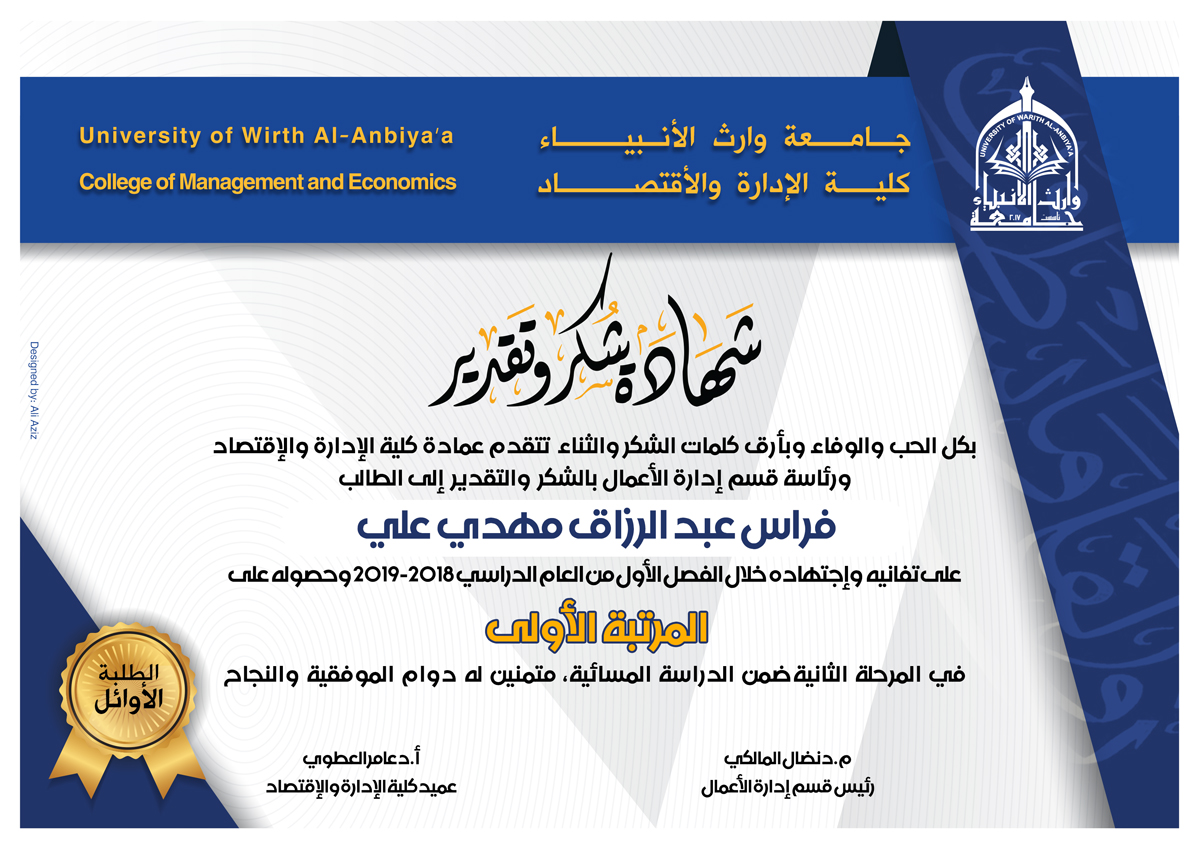 شهادات تقديرية لطلاب ادارة الاعمال