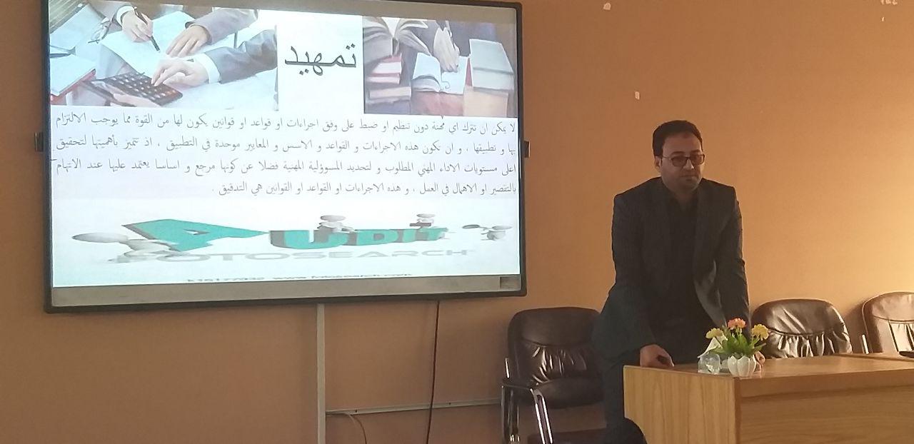 اقيمت في قاعة الامام الحسن -كلية الادارة والاقتصاد حلقة نقاشية بعنوان التدقيق الداخلي من قبل م.م سليم رشيد وقد تضمنت الحلقة الاشارة الى العديد من المحاور المهمة التي تتعلق بالتدقيق الداخلي والخطوات اللازم اتباعها من قبل الموظفين بالاضافة الى تقديم امثلة وقد شارك في الحلقة النقاشية اساتذة  كلية الادارة والاقتصاد وعدد من الطلبة