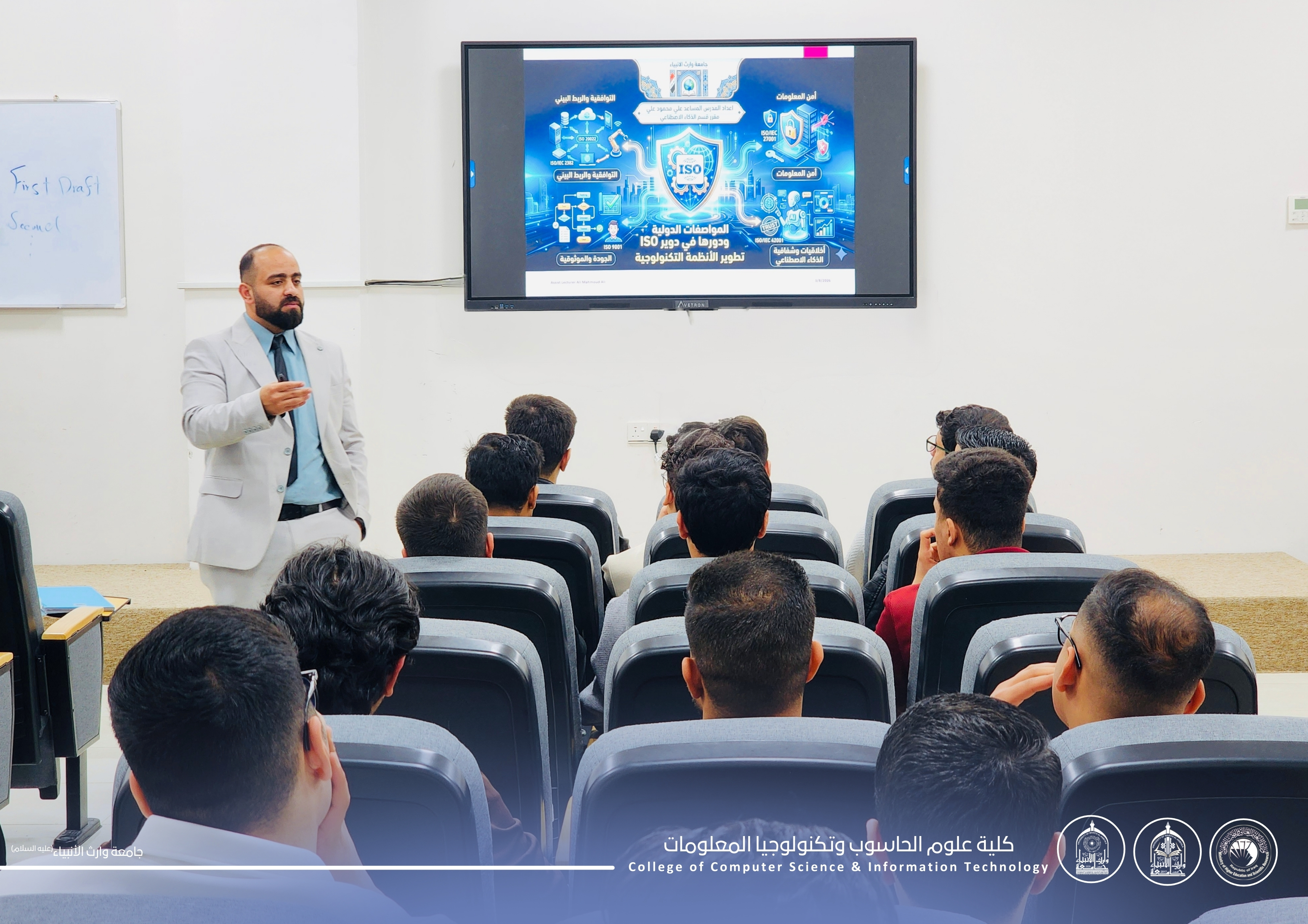 نظّمت كلية علوم الحاسوب وتكنولوجيا المعلومات / وحدة شؤون المرأة في جامعة وارث الأنبياء (عليه السلام) ورشة علمية بعنوان “المواصفات الدولية ISO ودورها في تطوير الأنظمة التكنولوجية” بتاريخ 10-3-2026، قدّمها المدرس المساعد علي محمود علي – مقرر قسم الذكاء الاصطناعي.