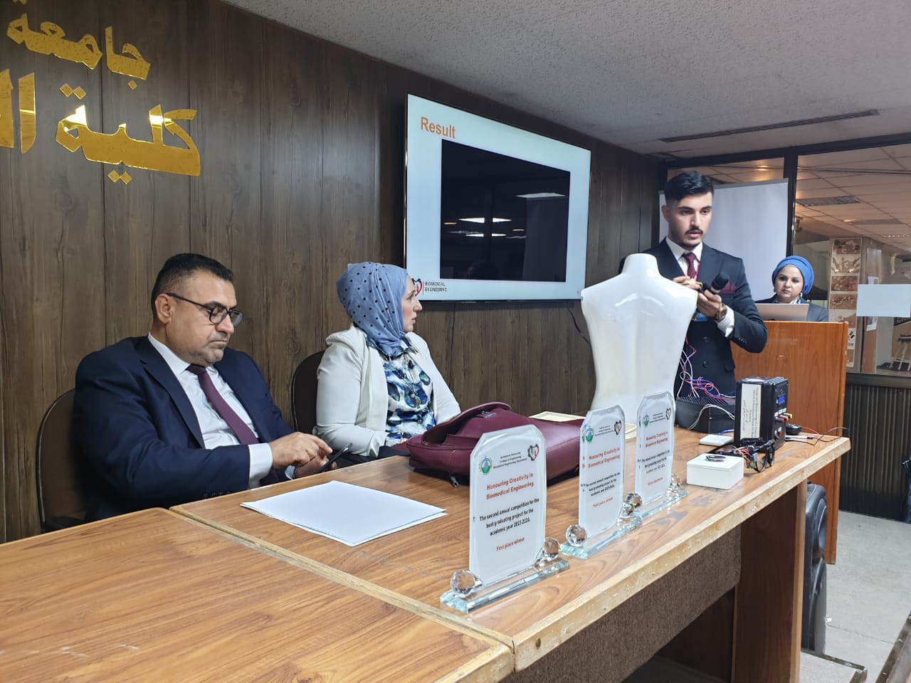 برعاية الاستاذ الدكتور جمعة سلمان جياد عميد كلية الهندسة / جامعة النهرين ، أقام قسم هندسة الطب الحياتي المسابقة السنوية بنسختها الثانية ، لاختيار أفضل مشروع تخرج للعام الدراسي 2023- 2024 لطلبة المرحلة الخامسة في القسم ، وذلك يوم الخميس الموافق 25/4/2024 ، في قاعة الرافدين .
