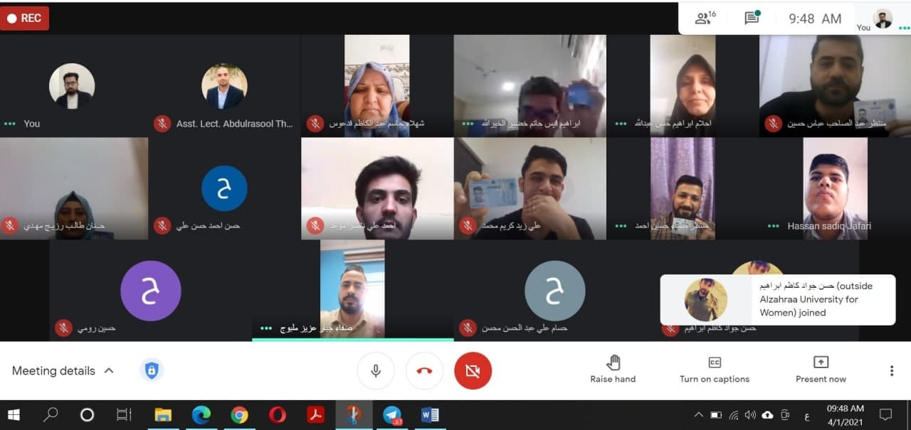 استكمالاً لما بدأته كُلْيَة الهندسة في الامتحانات الالكترونية للمراحل الثانية و الثالثة و الرابعة و بجهود كريمة من الساده القائمين على الكلية، باشر طلبة المرحلة الاولى في كلية الهندسة بأداء امتحاناتهم النهائية الالكترونية الدور الاول للفصل الدراسي الاول للعام الدراسي 2020 - 2021 من خلال منصة Moodle و كذلك منصة ال Google meet للتواصل مع الطلبة اثناء اداء الامتحان و ارشاد الطلبة الى الطرق الصحيحة في الحل و استكمال الاجابة على اتم وجه.