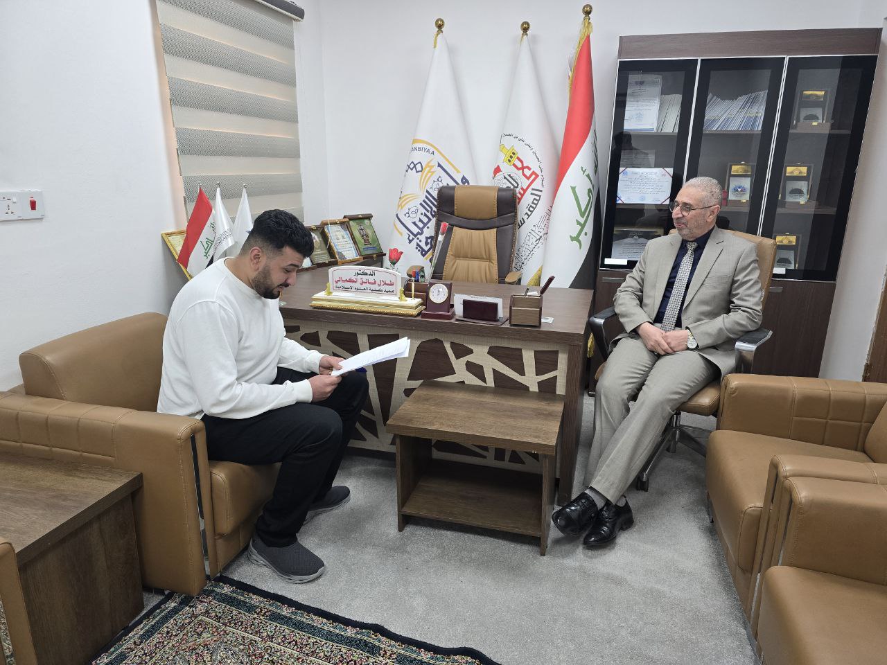 في إطار حرصه على تعزيز التواصل مع الطلبة وتشجيعهم على تحقيق التميز الأكاديمي، التقى الدكتور طلال فائق الكمالي، عميد كلية العلوم الإسلامية في جامعة وارث الأنبياء، أحد طلاب كلية الإعلام يوم الاثنين.