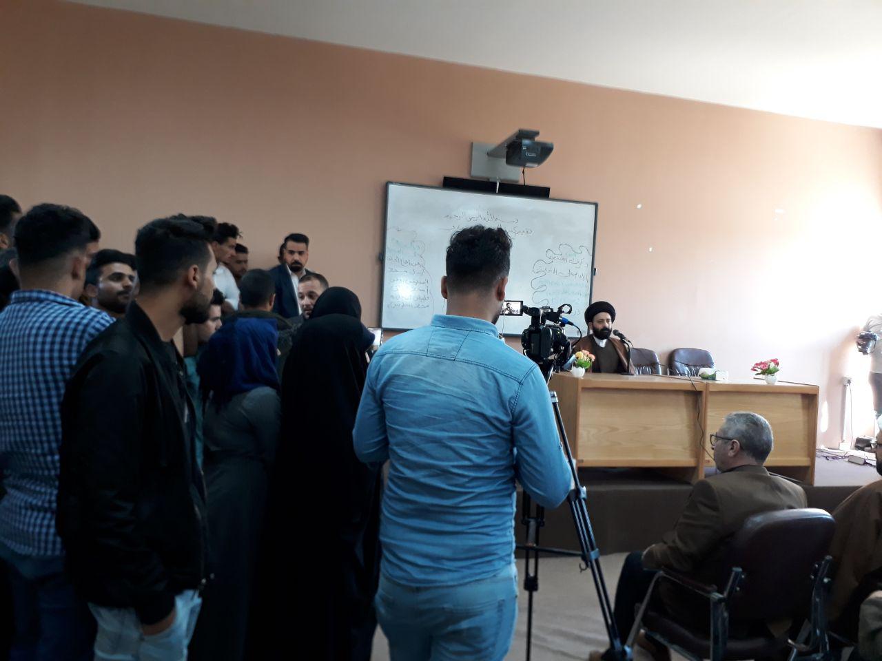 حل السيد علي الطالقاني ضيفاً على جامعة وارث الانبياء يوم الاثنين الموافق 11/3/2019 ضمن برنامج كلية العلوم الاسلامية باقامة ندوات ثقافية اسبوعية لتوعية الطلبة وارشادهم . وافتتح هذا الاسبوع بمحاضرة للسيد علي الطالقاني حيث مثلت ملتقى ثقافي وكان لها حضور وتفاعل متميز من طلاب الجامعة عرض بها الطالقاني اهم مسائل الشباب والمعوقات التي يواجهونها في حياتهم ليصلوا الى معطيات الحل عن طريق بيان مهمة الشباب والعمل الجاد في تبني المهام الموكلة اليهم