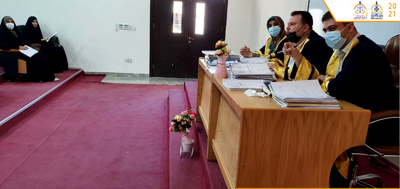 لليوم الثالث على التوالي تستمر كلية القانون بمناقشات بحوث الطلبة للمرحلة الرابعة للعام الدراسي 2020-2021 وفق اجواء علمية رصينة بغية الوصول الى افضل النتائج.