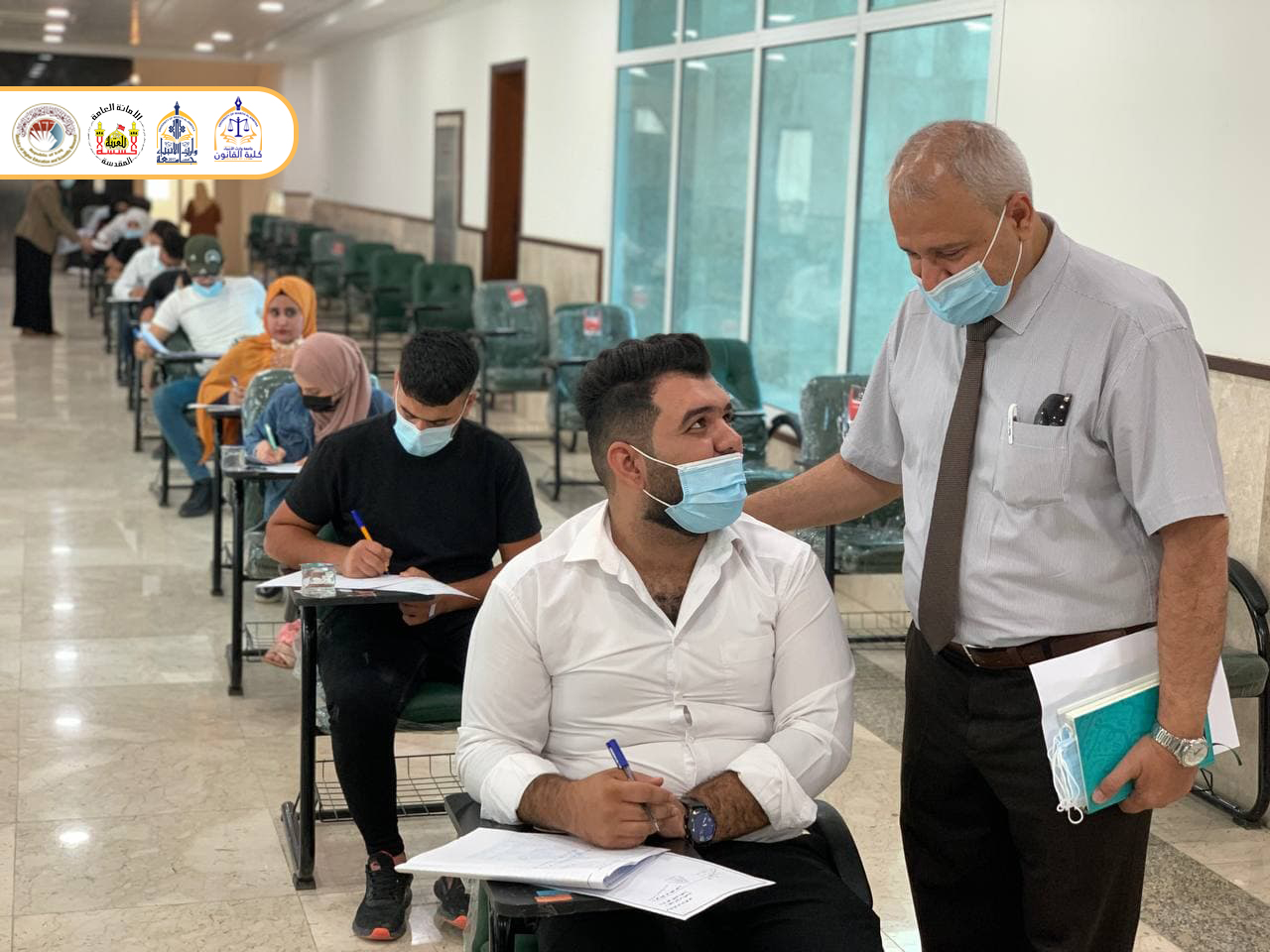 تفقد السيد عميد كلية القانون الدكتور عدنان هاشم جواد الشروفي سير الامتحانات حيث زار السيد عميد الكلية القاعات الامتحانية