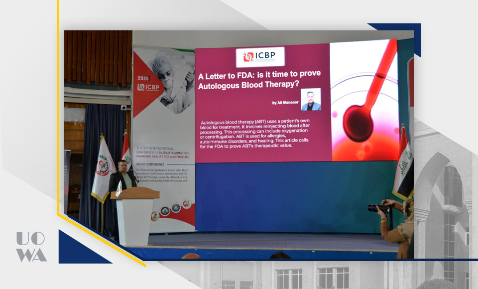 تتقدم كلية الطب – جامعة وارث الأنبياء بالتهنئة والتقدير للدكتور علي منصور على مشاركته الفاعلة باحثًا ومحاضرًا في ورشة عمل ضمن فعاليات المؤتمر الدولي الثاني لصيادلة البصرة، الذي نظمته نقابة صيادلة البصرة بالتعاون مع كلية الصيدلة – جامعة البصرة وجامعة لنكولن الماليزية، وذلك بتاريخ 16 و17 نيسان 2025.