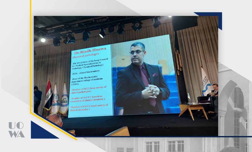 تبارك كلية الطب – جامعة وارث الأنبياء للدكتور رياض حنيوه، التدريسي في فرع الكيمياء المرضية، لمشاركته الفاعلة في المؤتمر الأول للجمعية العراقية للغدد الصم والسكري، الذي أُقيم في بغداد.