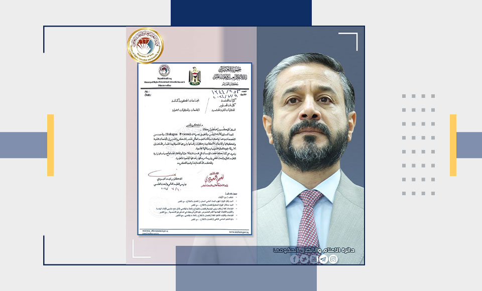 وجدد وزير التعليم التأكيد على العمل ضمن الصلاحيات الممنوحة وتيسير إنجاز الإجراءات على وفق المقتضيات القانونية واختزال الوقت والجهد بما يخدم المصلحة العامة في ضوء التحول الرقمي الشامل وأتمتة العمليات والإجراءات في وزارة التعليم العالي والبحث العلمي.