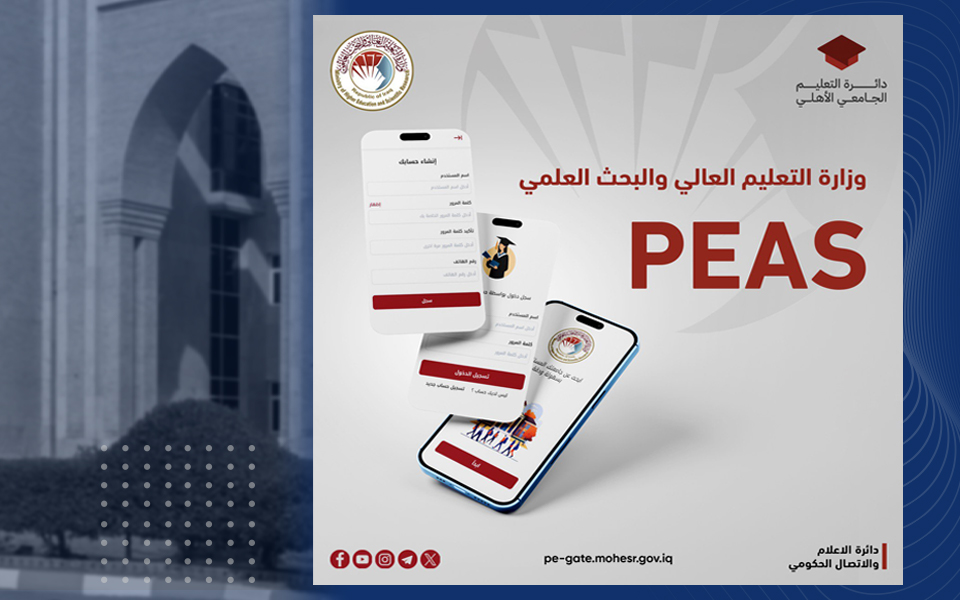 أعلنت وزارة التعليم العالي والبحث العلمي عن إطلاق مرحلة التقديم الإلكتروني المركزي للقبول في الجامعات والكليات الأهلية للعام الدراسي 2025/2024، وذلك عبر منصة التسجيل الإلكترونية. ووفقاً للضوابط المعتمدة، يمكن للطلبة تعبئة استمارات التقديم عبر التطبيق الإلكتروني PEAS، حيث يتيح لهم اختيار أربعة برامج دراسية ضمن القناة العامة، إضافة إلى خيارين آخرين عند التقديم عبر القنوات الخاصة.