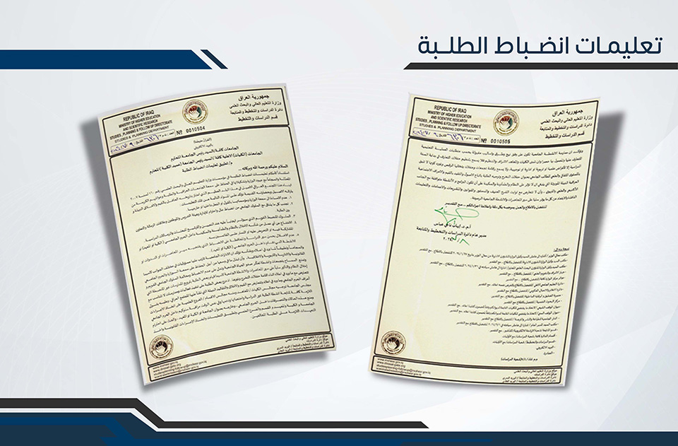 تحرص جامعتنا على تتويج مسيرتكم العلمية بقيم الانضباط والالتزام، التي تعدّ حجر الأساس لتسهيل الإجراءات الإدارية ومعاملات التخفيض، إلى جانب تعزيز بيئة تعليمية مثالية. وفي هذا السياق، ندعوكم إلى الالتزام بمجموعة من التعليمات التي تهدف إلى دعم مسيرتكم الأكاديمية وتحقيق تطلعاتكم، وهي كالتالي: