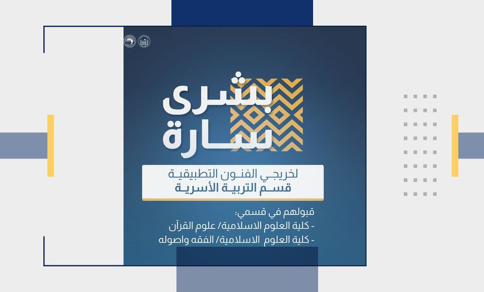 بشرى سارة لخريجي الدراسة الإعدادية فرع الفنون التطبيقية / قسم التربية الأسرية