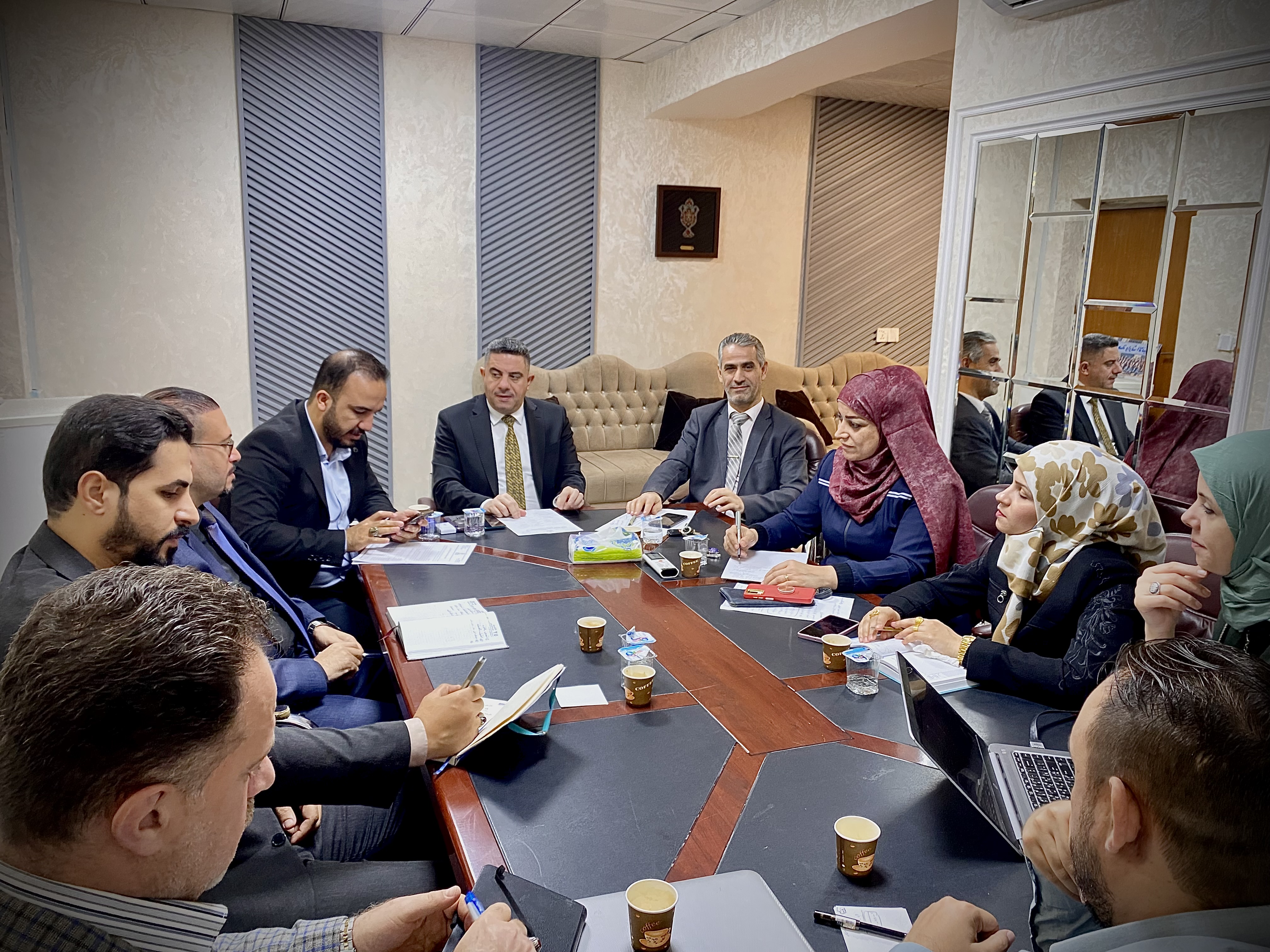اجتماع لجنة الاعتماد البرامجي في كلية التمريض برئاسة الأستاذ الدكتور مرتضى الجبوري، ورئيس قسم ضمان  الجودة المدرس المساعد حسين الغانمي، يعد خطوة هامة نحو تعزيز جودة التعليم والبرامج الأكاديمية في الكلية.