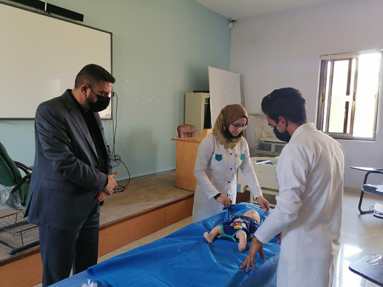 تابع السيد عميد كلية التمريض الاستاذ المساعد الدكتور مرتضى غانم الجبوري سير الامتحانات النهائية العملية الحضورية لطلبة كلية التمريض