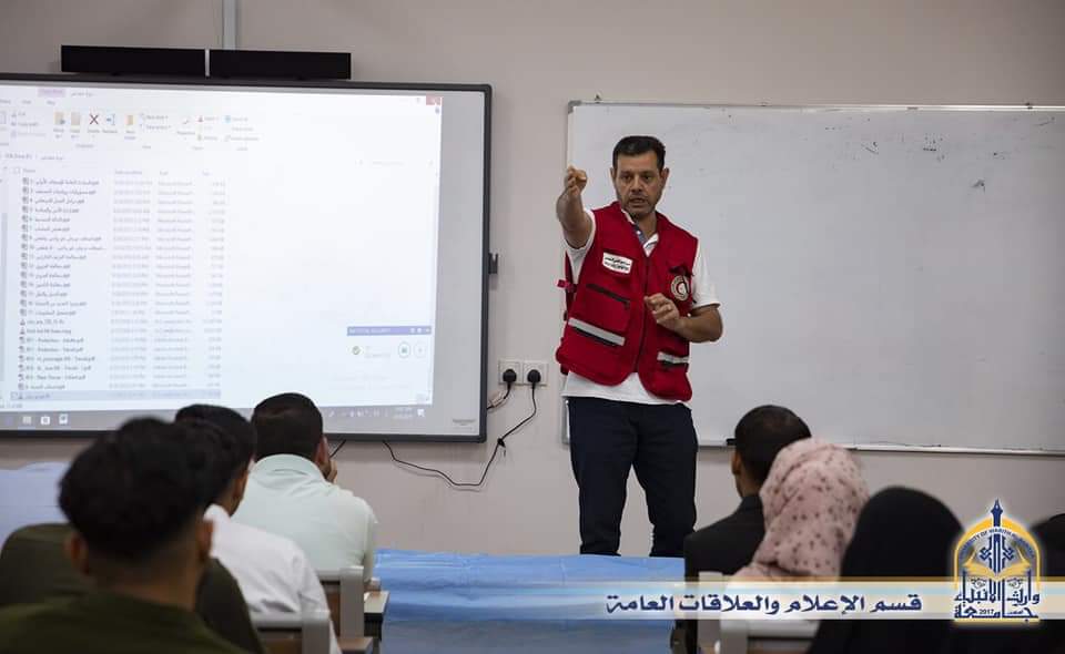 نظم مركز التعليم المستمر في جامعة وارث الانبياء(عليه السلام) وبالتنسيق مع جمعية الهلال الأحمر العراقي فرع كربلاء المقدسة ورشة عمل تدريبية لمنتسبي الجامعة والطلبة في الأسعافات الأولية ، وتضمنت الورشة تدريب المشاركين على كيفية اسعاف المرضى والجرحى في الحالات الطارئة والحوادث وماهي الحالات البديلة قبل نقل المريض الى المستشفى في الدقائق الأولى من الأصابة والتي شملت كافة الخطوات الواجب القيام بها للتعامل مع هذه الحالات بالشكل المبسط وبتطبيق عملي لتسهيل التعلم والتصرف بحكمة لتفادي هذه المشاكل مثل حالات (الاختناق , الغرق , الحريق , والانفجارات) والحالات الاضطرارية كحالات فقدان الوعي ، والتعامل مع كل حالة بشكل يختلف عن الاخر فضلا عن التدريب على مبادئ الاسعافات الاولية في الحالات الطارئة نتيجة الاحداث التي يتعرض لها البلد وما يتعرض له المواطن في حياته اليومية ، فيما اكد السيد سامر نزار عبد مدرب اسعافات اولية في جمعية الهلال انه من الضروري تدريب الجميع على الاسعافات الاولية لأنها تعد الطريقة المثلى لانقاذ حياة المواطنين في الدقائق الاولى لوقوع الحادث والتي تعد الدقائق الذهبية لأنقاذ حياة المصاب.