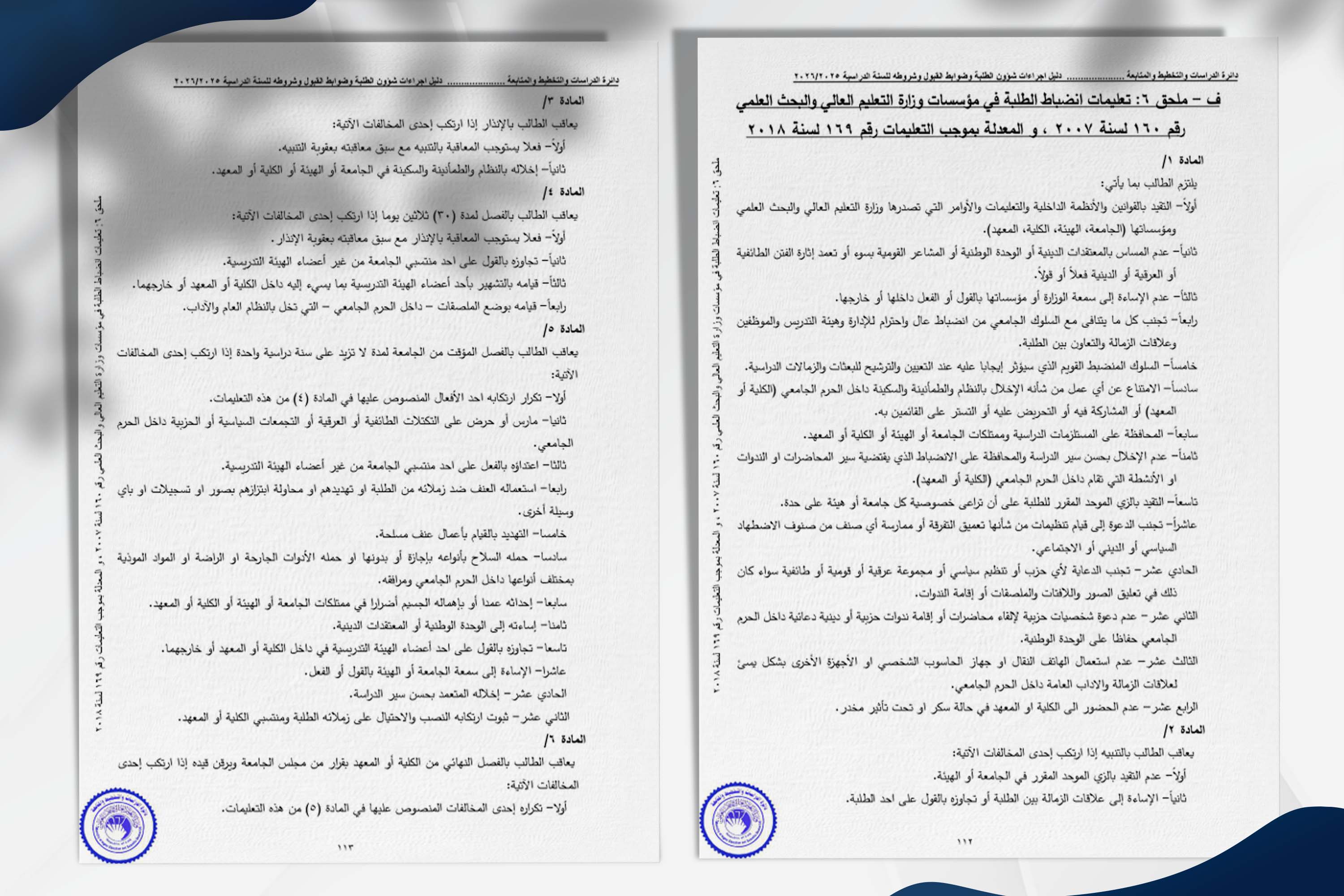 تحرص جامعتنا على تتويج مسيرتكم العلمية بقيم الانضباط والالتزام، التي تعدّ حجر الأساس لتسهيل الإجراءات الإدارية ، إلى جانب تعزيز بيئة تعليمية مثالية. وفي هذا السياق، ندعوكم إلى الالتزام بمجموعة من التعليمات التي تهدف إلى دعم مسيرتكم الأكاديمية وتحقيق تطلعاتكم.
