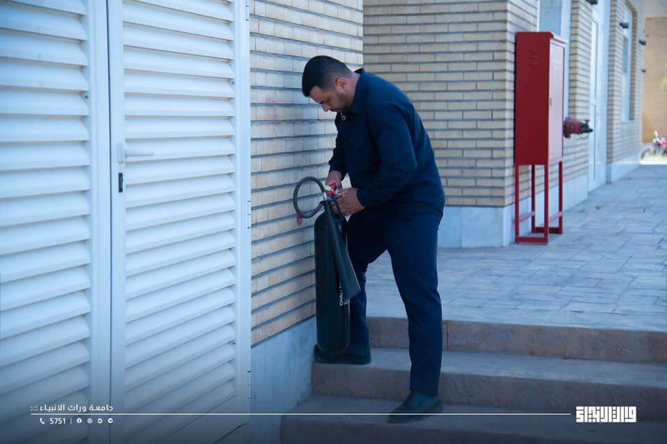 شعبة الدفاع المدني تواصل جهودها اليومية لضمان بيئة جامعية آمنة في جامعة وارث الأنبياء (ع)