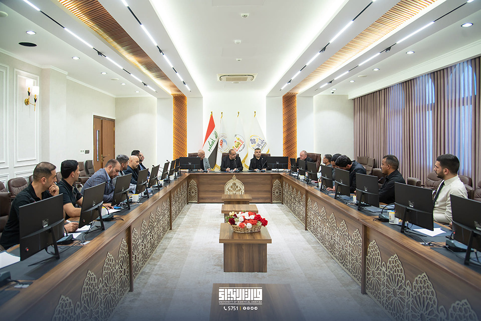 عقد السيد رئيس جامعة وارث الأنبياء (عليه السلام)، الأستاذ الدكتور إبراهيم سعيد الحياوي، اجتماعاً موسعاً مع مساعديه الإداري والعلمي، بالإضافة إلى عدد من عمداء الكليات ورؤساء الأقسام الإدارية والخدمية.