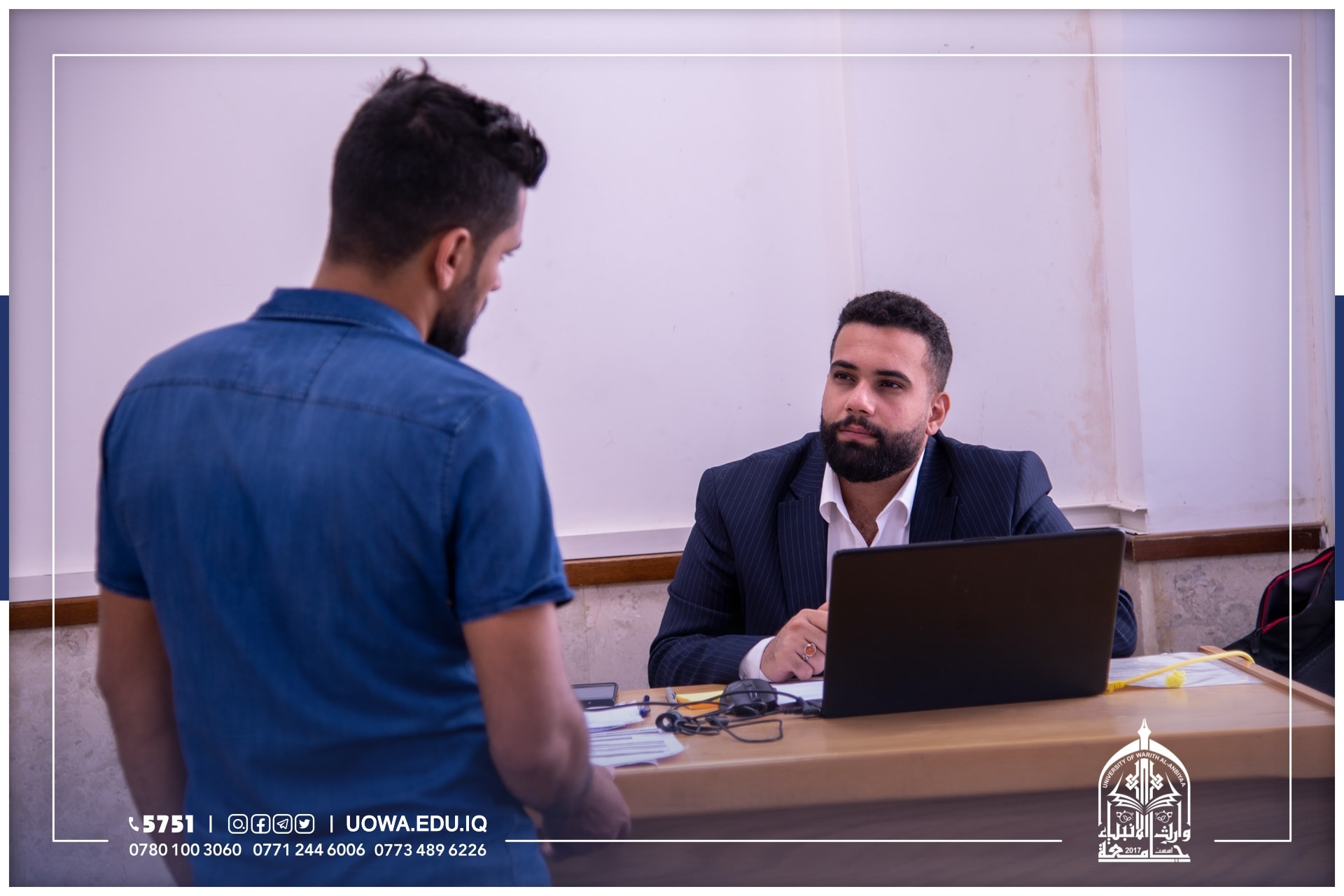 جانب من استقبال فريق التسجيل في جامعة وارث الانبياء(عليه السلام) للطلبة الاعزاء واولياء امورهم الكرام للاجابة عن استفساراتهم ومساعدتهم في انجاز اولى خطوات التقديم، وهي انشاء حساب الطالب وملء البيانات وتفعيل القنوات الخاصة.