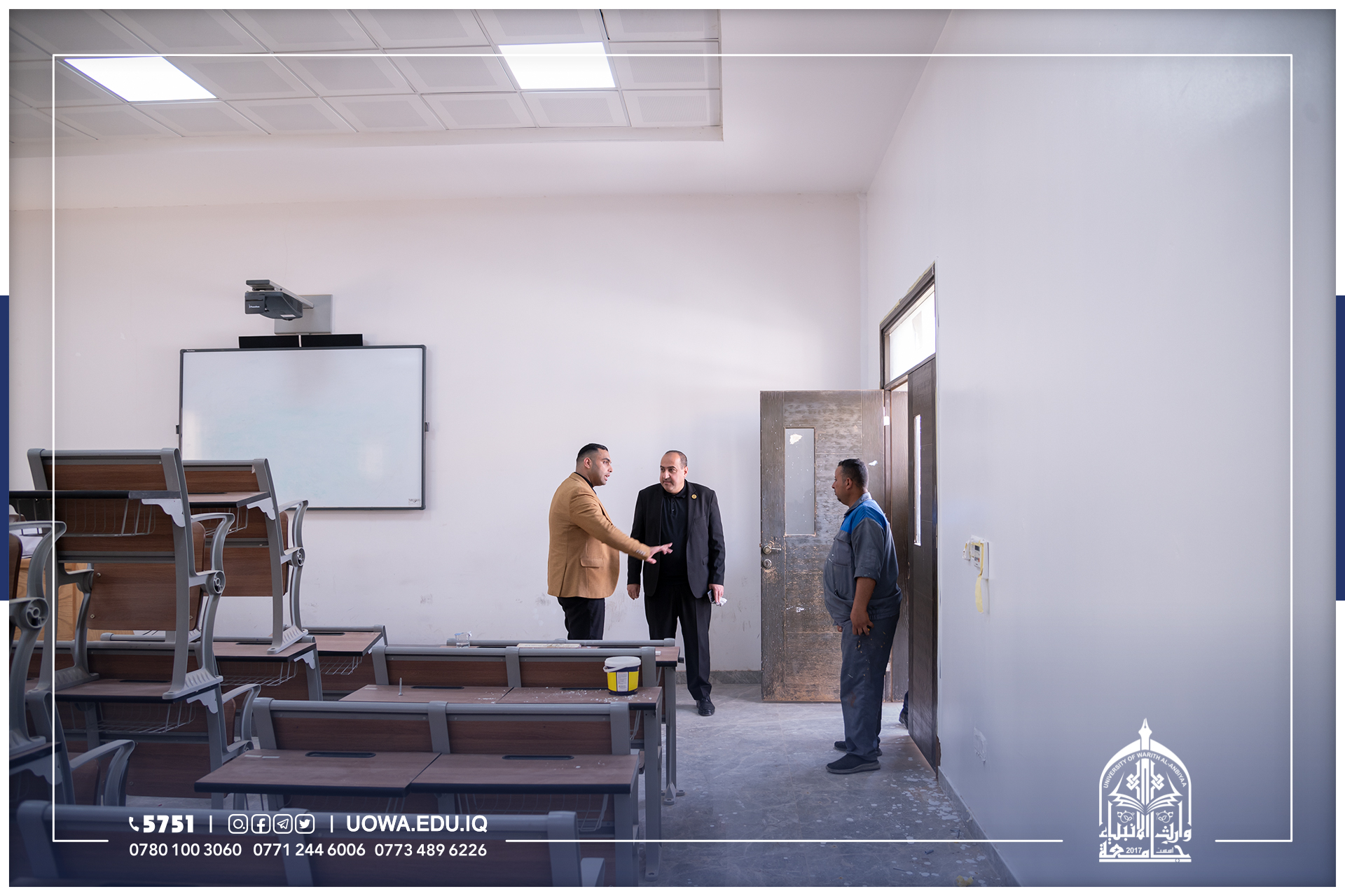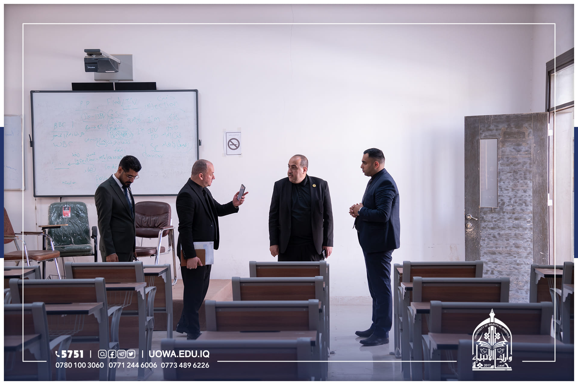 جانب من الجولة التفقدية لرئيس جامعة وارث الأنبياء (عليه السلام) الاستاذ الدكتور أبراهيم سعيد الحياوي على الكليات والأقسام الفنية والعلمية في الجامعة للوقوف على أحتياجاتها وأستعدادتها تحضيرا للعام الدراسي الجديد.