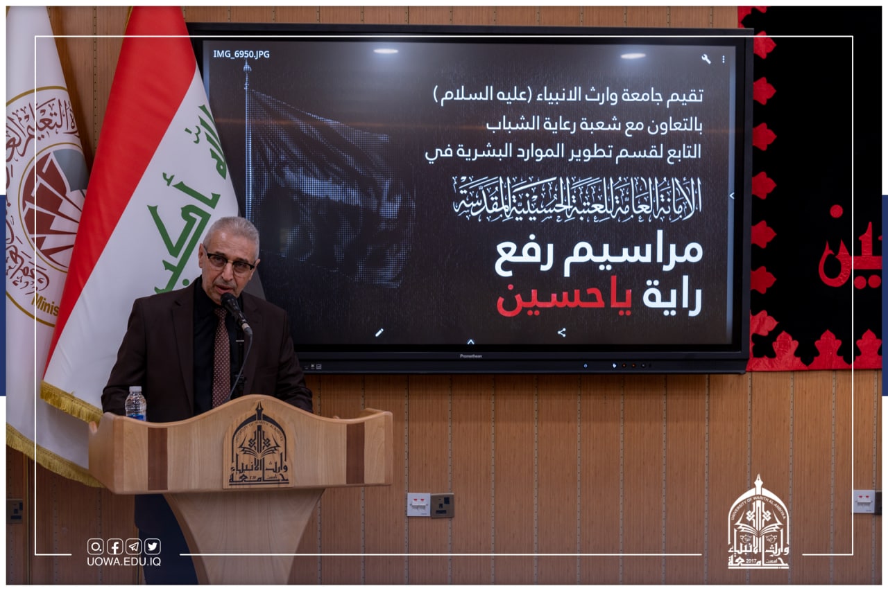 أقامت جامعة وارث الانبياء(عليه السلام) وبالتعاون مع شعبة رعاية الشباب التابع لقسم تطوير الموارد البشرية في العتبة الحسينية المقدسة مراسم رفع راية ياحسين السوداء في الجامعة إيذاناً ببدء موسم الأحزان المحمدية_ شهر محرم الحرام بمشاركة عدد من اساتذة وموظفي الجامعة والطلب.