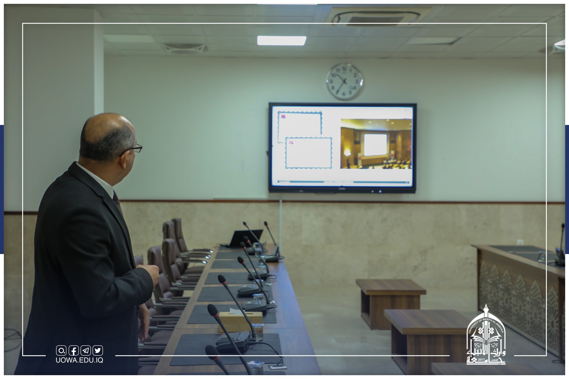 اجرى الاستاذ الدكتور نوفل الاعرجي رئيس الهيئة المؤسسة لجامعة وارث الأنبياء(عليه السلام)، ومساعد رئيس الجامعة للشؤون الإدارية يرافقه