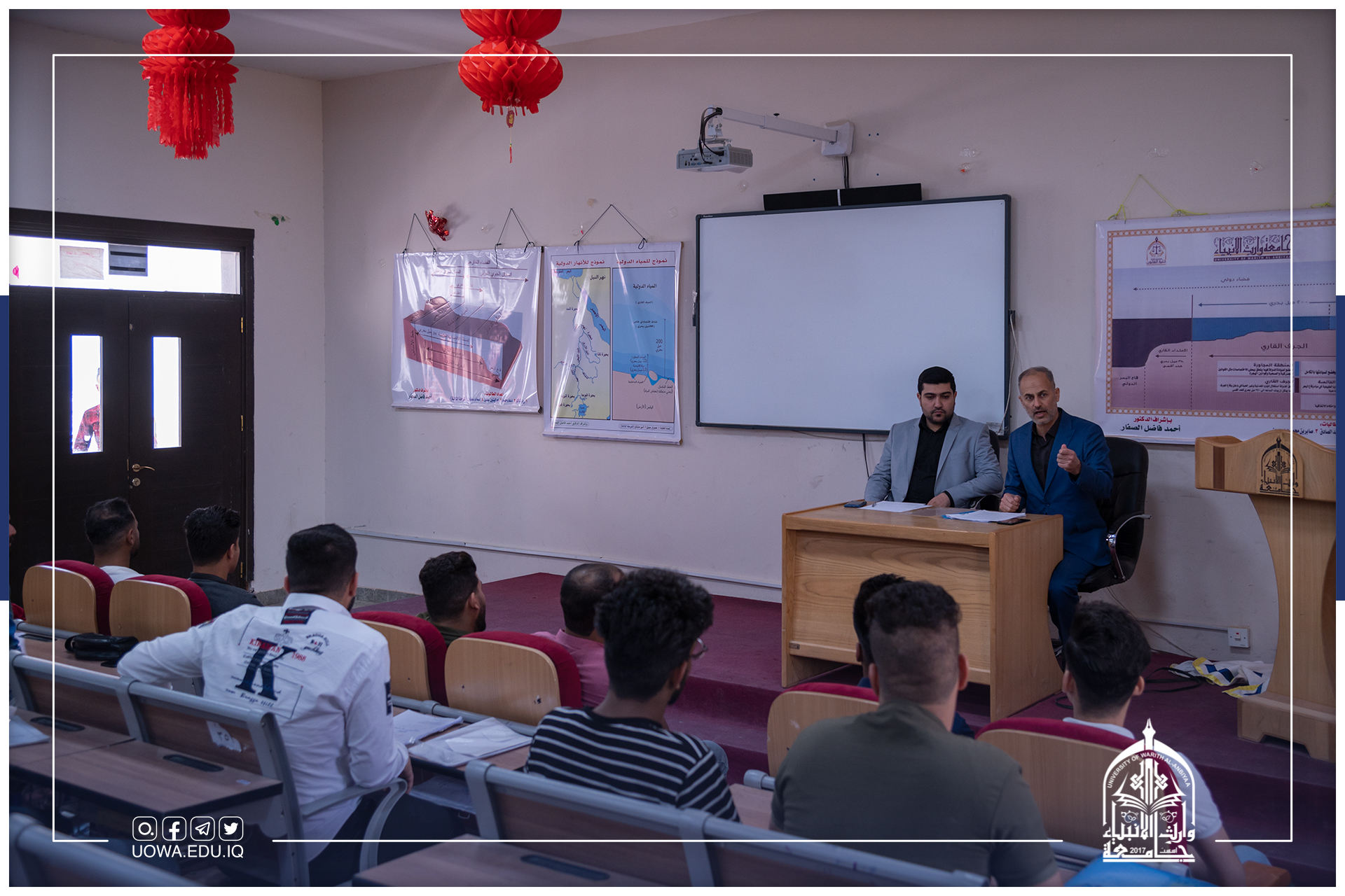بحضور لجنة علمية مشكلة من قبل عمادة كلية الادارة والاقتصاد للإشراف على المناقشات، عقد قسم ادارة الاعمال جلسة خاصة لمناقشة بحوث التخرج لطلبة المرحلة الرابعةوتضمنت هذه البحوث مواضيع تناولت احتياجات المجتمع في سوق العمل كالسياحة وادارة المشاريع وغيرها من المواضيع التي قدمها الطلبة باشراف اساتذة القسم. يذكر أن جامعة وارث الانبياء(عليه السلام) قد أعدت برنامجاً مكثفاً لطلبة المرحلة الرابعة لتخريج طلبة يتقنون تخصصهم ويمتلكون المهارة الكافية للانخراط في سوق العمل.