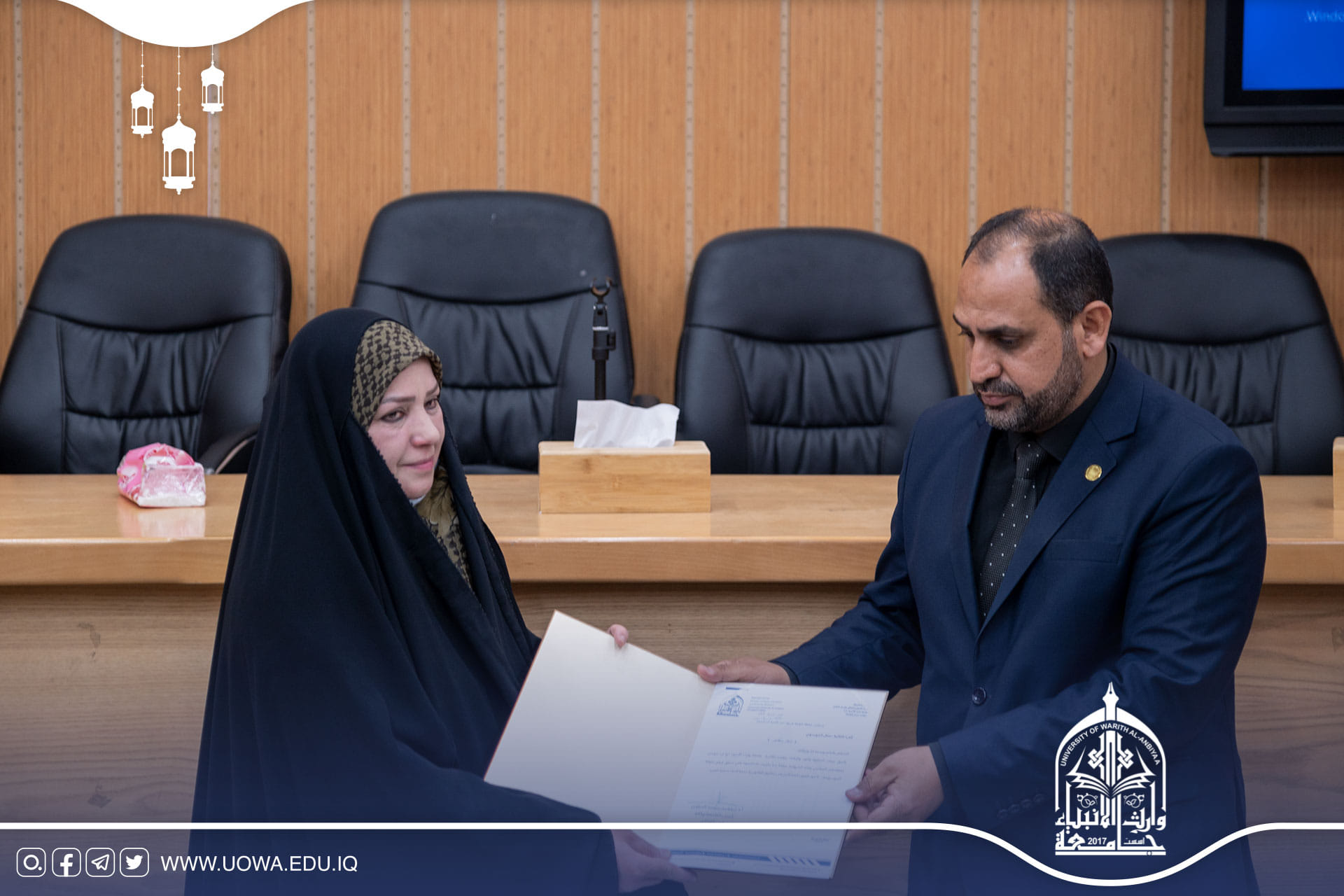 قيم مركز التعليم المستمر في جامعة وارث الانبياء (عليه السلام) بالتعاون مع كلية الادارة والاقتصاد ندوة بعنوان (تعليمات والية التقديم على الترقيات العلمية):من قبل السادة:- م.د نضال عبدالله ياسين المالكي - م.د. ضياء فالح بناي- م.د حسين محمد علي كشكول، وذلك في يوم الثلاثاء الموافق 5 / 4 / 2022 وفي تمام الساعة 11:00 صباحاً في احدى القاعات الدراسية في بناية العصمة. والفئة المستهدفة اعضاء الهيئة التدريسية في الجامعة .