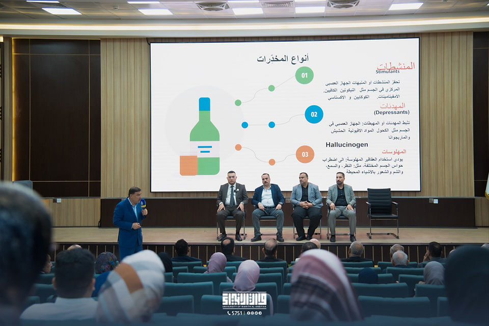 The College of Medicine at the University of Warith Al-Anbiyaa (PBUH) held a scientific seminar titled "The Plague of Drugs: Causes and Solutions," presented by Dr. Jassim Al-Mousawi and Dr. Sabah Al-Jubouri. The seminar explored the reasons behind youth drug abuse, including social and economic pressures and environmental influences. It also discussed possible solutions to curb the spread of this issue through prevention programmes and specialised treatment.