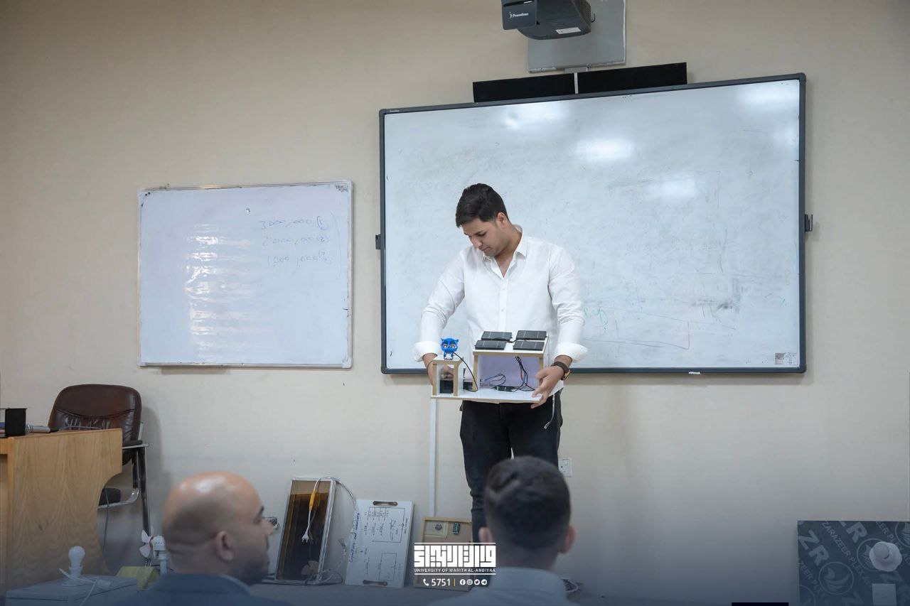 In the presence of the University President, Prof. Dr. Ibrahim Al-Hayawi, the Scientific Assistant, Prof. Dr. Waqid Al-Mousawi, and the Dean of the Faculty of Science, Dr. Shaimaa Hussein Nawfal, first-year students of the Department of Medical Physics organized a series of seminars and practical experiments in groups. These activities aimed to foster the development of their scientific ideas and enhance their knowledge, reflecting the Faculty’s vision of enabling students to effectively link theoretical knowledge with practical application.
