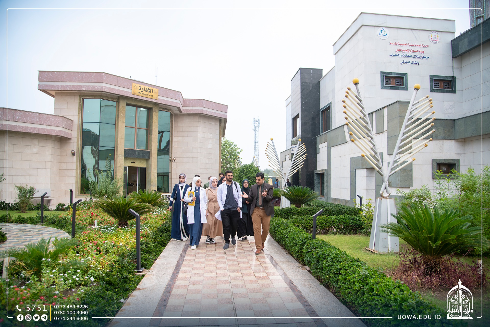 Medical students from the College of Medicine at the University of Warith Al-Anbiyaa (peace be upon him), accompanied by faculty members, conducted a scientific visit to the "Neuropathy and Cerebral Palsy Center" affiliated with the Holy Shrine of Imam Hussain. The director of the center provided an explanation about the center, its departments, and the available equipment.