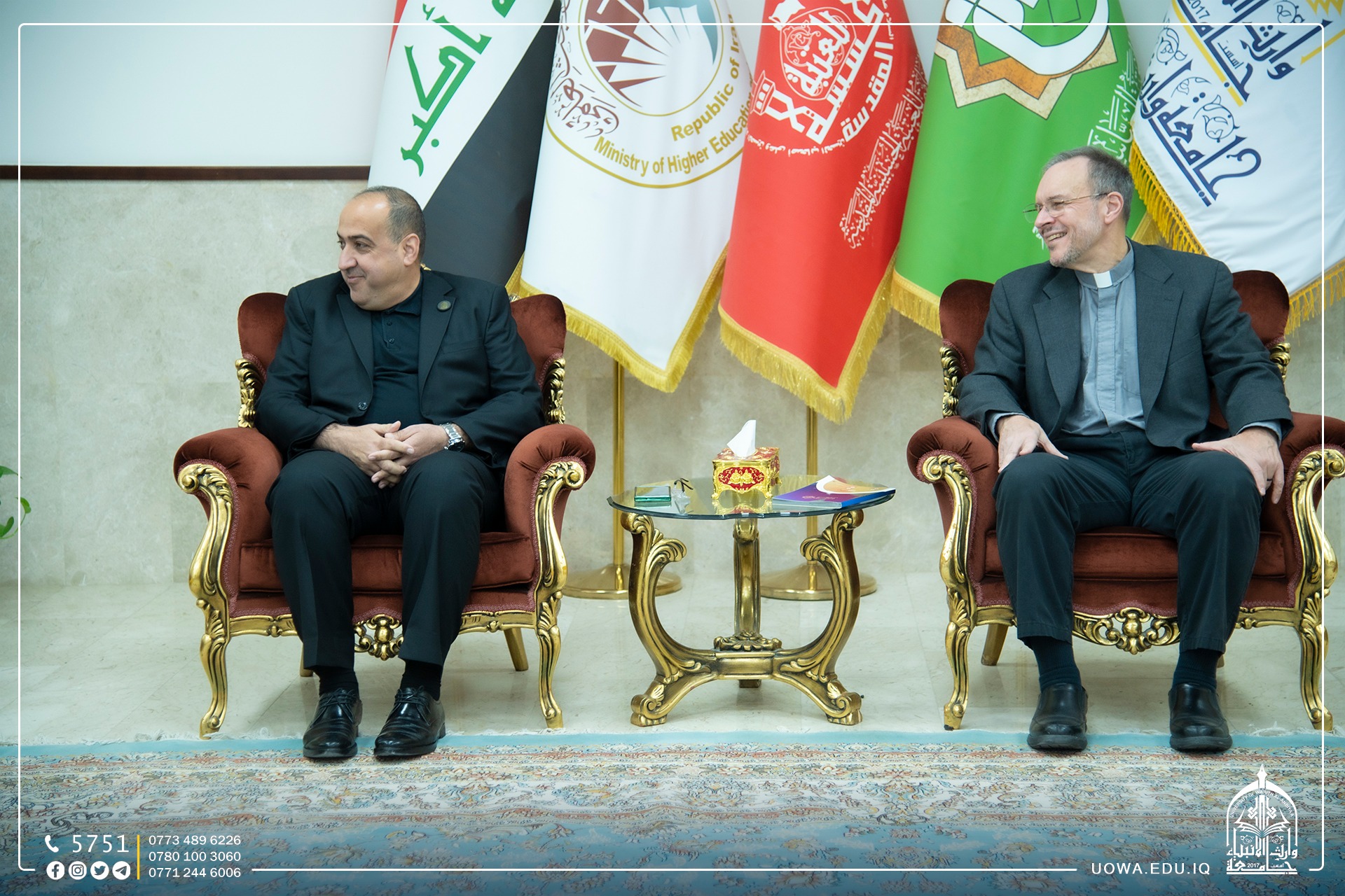 As part of the events of the International Scientific Conference organized by the Holy Shrine of Imam Hussain, a delegation from the Christian faith visited the University of Warith Al-Anbiyaa (Peace Be Upon Him). The conference focuses on the esteemed religious authority, His Eminence Sayyid Ali Al-Husseini Al-Sistani (May his shadow endure).