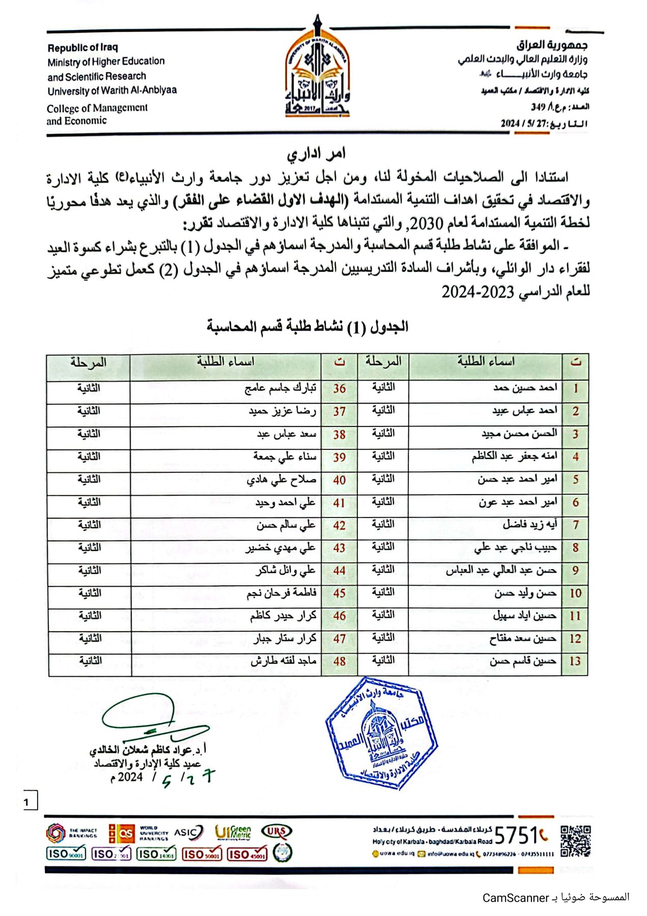 An Iraqi university recognized by the Iraqi Ministry of Higher Education and Scientific Research under Ministerial Order No. (T.A./K 4727 in the year 2017)