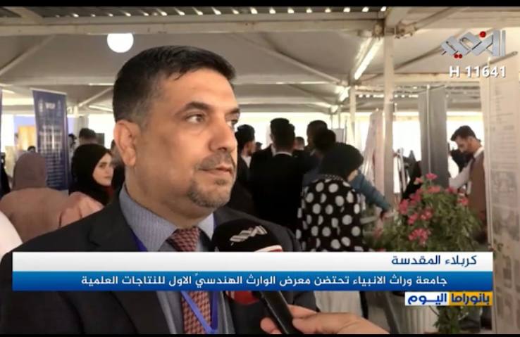 Al-Naeem Satellite Channel met with the Dean of the College of Engineering, Assistant Professor Dr. Hussein Hadi Al-Awadi, as part of its coverage of the first Warith Engineering Exhibition for Scientific Products, which was held at Warith Al-Aniya University (AS).