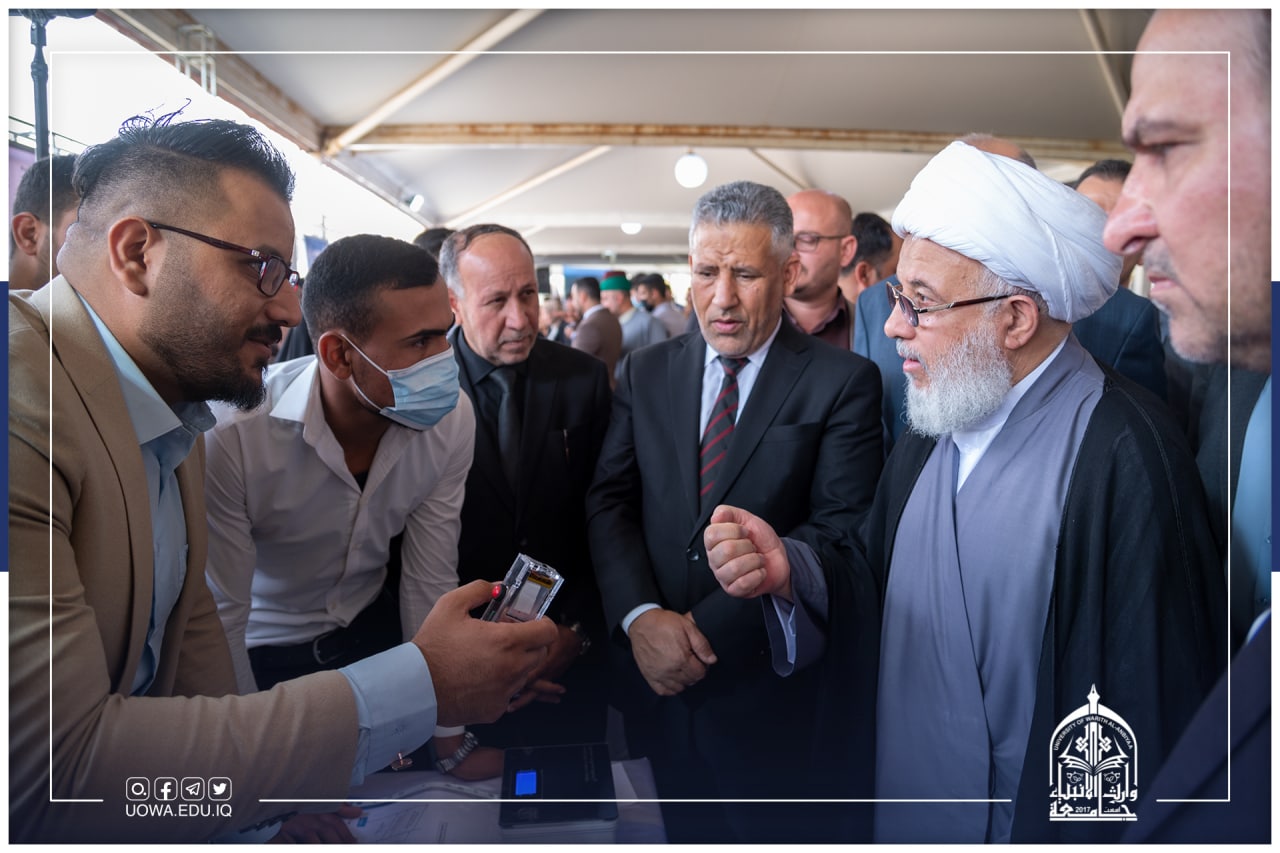 His Eminence, the legal guardian of the Al-Abbas's (p) Holy Shrine, Sheikh Abdul-Mahdi Al-Karbalai (may his glory last), inaugurated this morning, Sunday, (the first engineering exhibition for graduation projects and scientific products) held by the College of Engineering at the University of Warith Al-Anbiya (peace be upon him), to introduce the talents of students and their ability to prepare scientific research in addition to enriching the practical aspect with excellence and creativity.