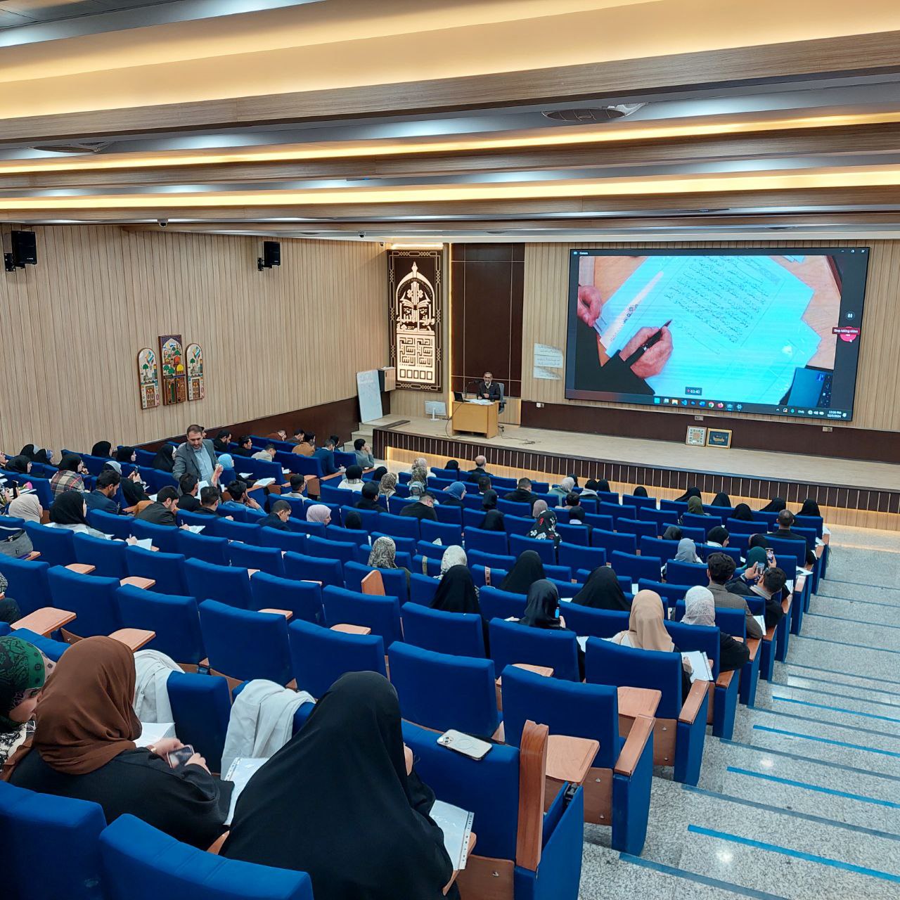 On Monday, December 2, 2024, the College of Islamic Sciences at the University of Warith al-Anbiya (peace be upon him) organized the first workshop in a series of workshops for the “Writing the Holy Qur’an - Words of Light” project, in the hall of the Al-Naeem Building.