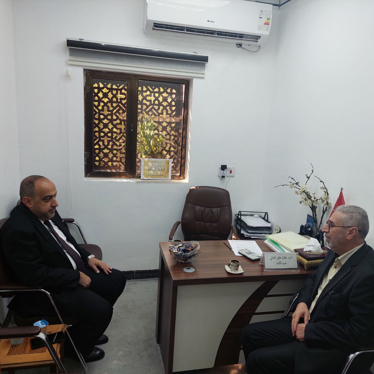 The President of Warith Al-Anbia University (peace be upon him), Professor Ibrahim Saeed Al-Hayawi, paid an inspection visit to the College of Islamic Sciences on Monday, 10/14/2024. During the visit, he discussed with the Dean of the College, Professor Talal Al-Kamali, a number of important issues related to academic and administrative affairs.