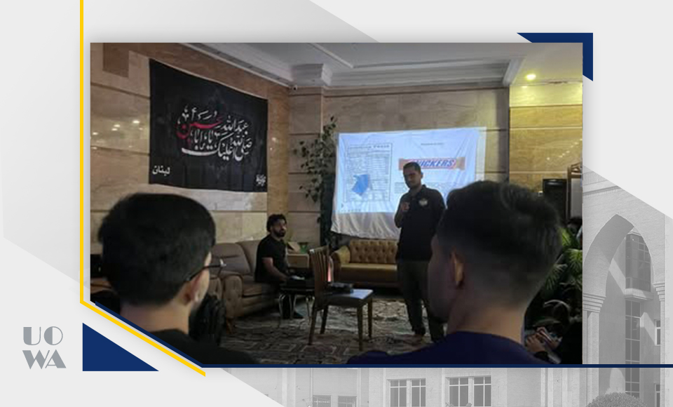 As part of the medical detachments' activities to serve pilgrims commemorating the Arbaeen of Imam Hussein (peace be upon him), and in cooperation with the International Imamiyya Organization (IMI), a scientific workshop was organized for medical students entitled: "Fluids Management and Electrolytes Disturbance." The workshop was presented by Dr. Ali Abbas Naqavi from the United States of America. He discussed the latest methods in fluid management and the treatment of electrolyte disturbances in the body, with realistic clinical cases presented to enhance students' practical understanding. This event aims to develop medical students' skills and enhance their academic proficiency by providing them with the opportunity to interact directly with international medical expertise, contributing to the preparation of a qualified medical generation to serve the community and honorable pilgrims during the blessed pilgrimage.