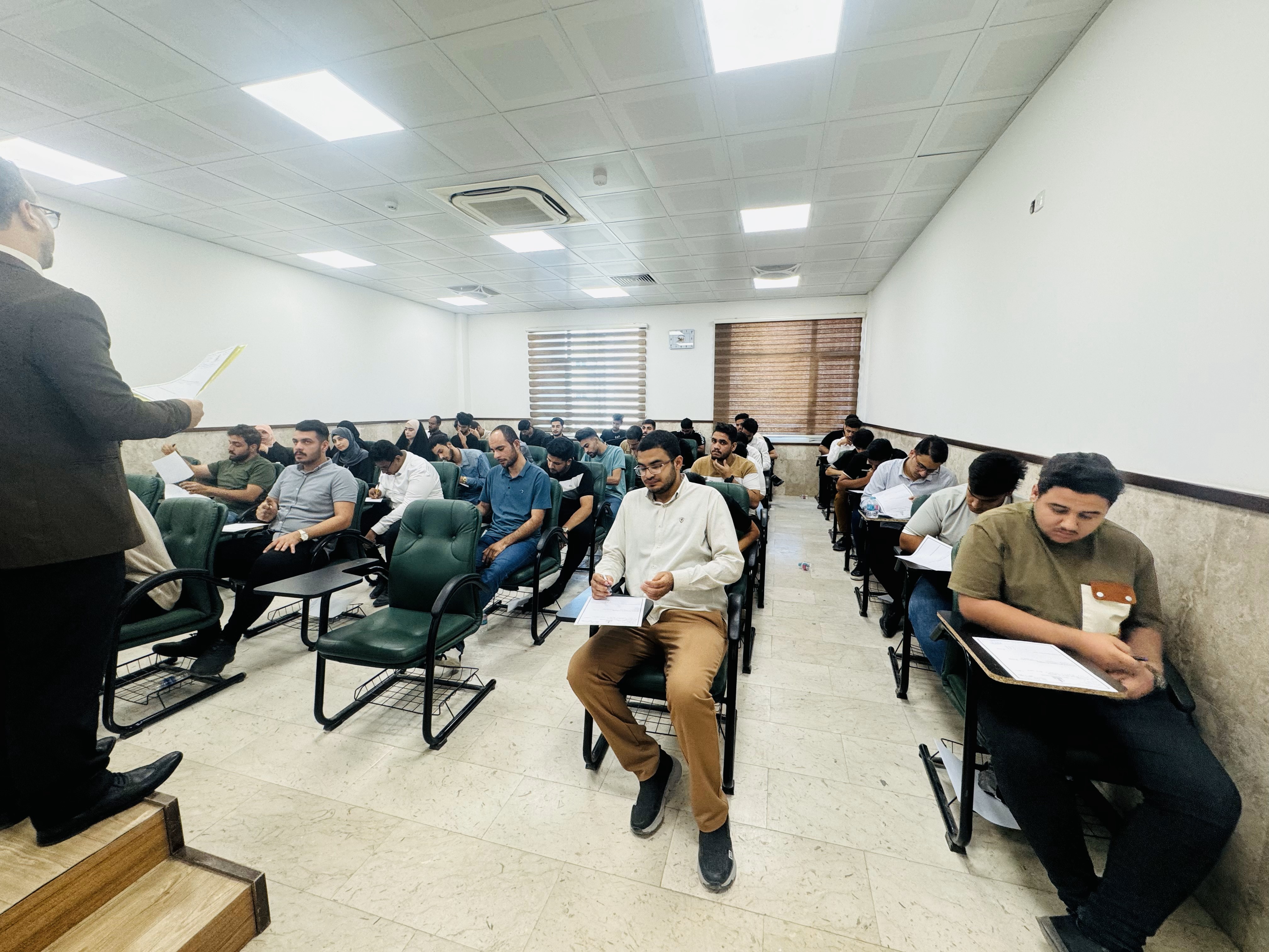 First-year students of College of Science are taking mid-term exams with facilitated procedures, under the guidance of the esteemed college dean, Dr Shimaa Hussein Noufal During the exams, the dean met with the students and listened to their opinions regarding the exam environment, suitable conditions such as comfortable seating, lighting, and the distribution of exam questions evenly across the course material All obstacles and difficulties faced by the students during the exam period were addressed