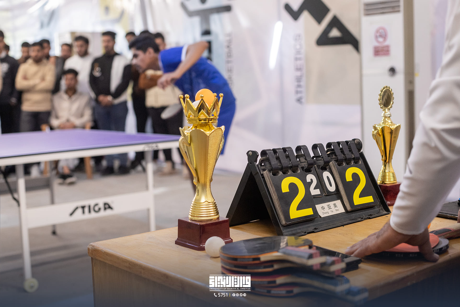 The Table Tennis Championship at the University of Warith Al-Anbiyaa (peace be upon him) concluded successfully under the sponsorship and supervision of the Student Activities Department, with broad participation from students in various colleges.